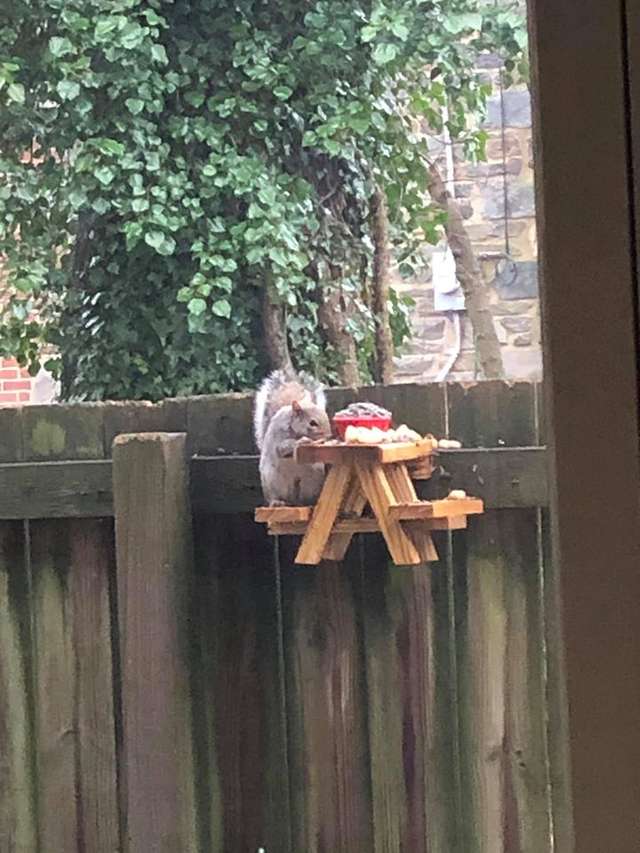 松鼠吃Buffet! 他在後院放上「迷你小餐桌」招待 「呆萌小客人」來用餐網友全被萌化♡