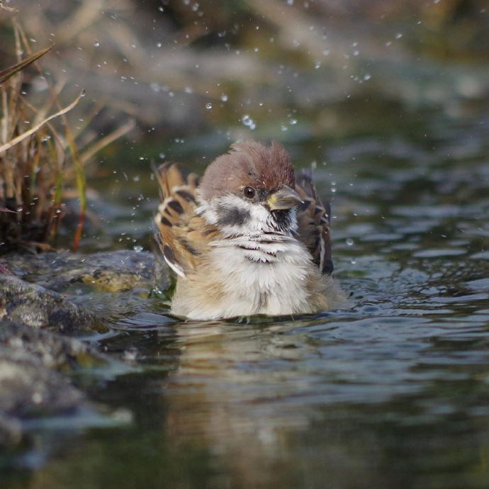 旋轉、跳躍~攝影師拍下「療癒麻雀日常」 圓潤潤超可愛:人家只是羽毛比較蓬!