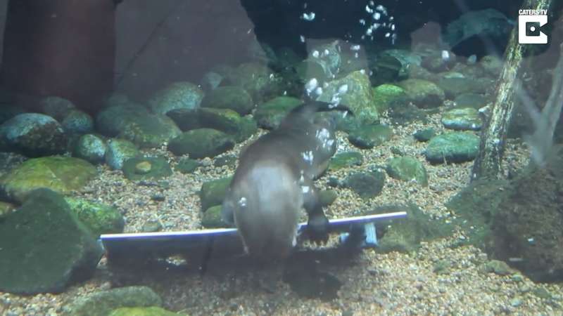 ▼在美國擔任女記者的Kelly Sommariva日前接到上司的指示,要她到動物園拍攝水獺。於是她架好了攝影機腳架,專心拍攝水中的水獺。