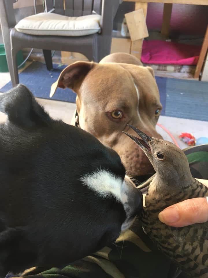 確定小鳥沒事後,Elizabeth就將牠放回大自然了。Elizabeth將自家愛犬擔心狗狗的模樣拍下來po上網,希望大家不要對比特犬抱有偏見,牠們的外表有點兇,但牠們的心很溫柔~