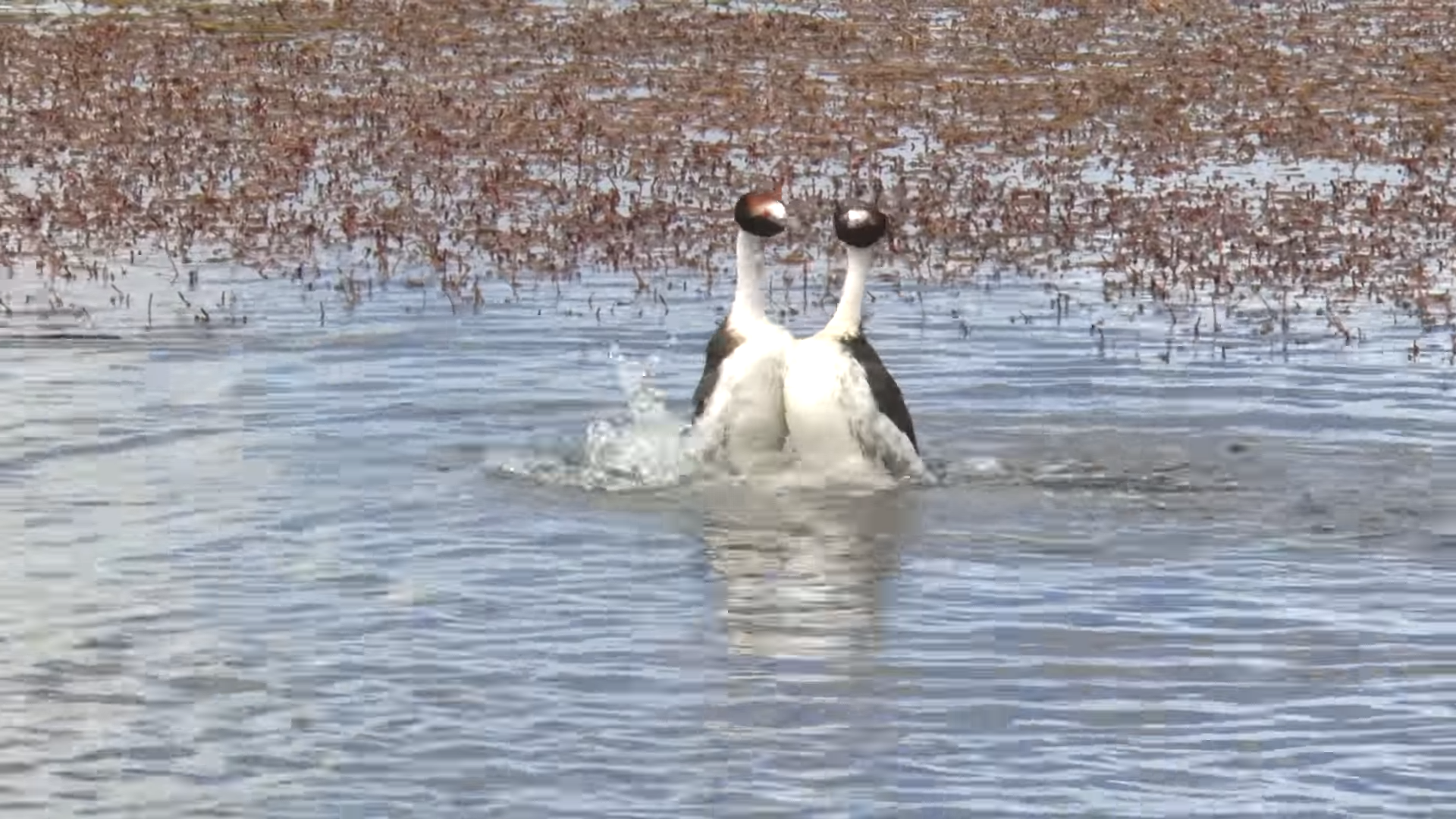 Start Monday morning right - by watching the hooded grebe's mating dance. pic.twitter.com/K7Ago6TeO8