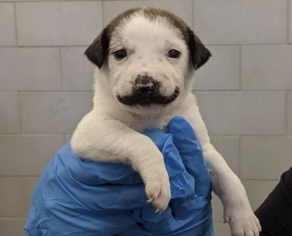 ▼狗寶寶們逐漸長大,這隻長有兩撇鬍子的小狗看起來尤其特別。收容所的工作人員覺得牠的長相充滿喜感,於是將牠的照片分享出去,讓更多人看到。沒想到這隻小狗因此走紅,很快引起關注。