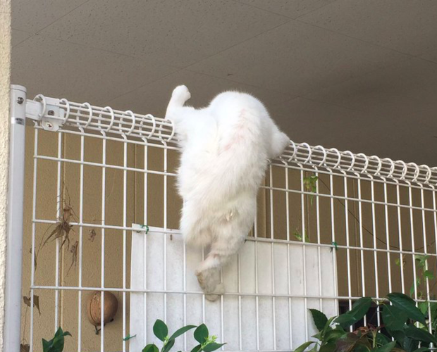 2021年04月09日貓咪動作敏捷,非常聰明,但也有出包的時候~日本推主@taremayu425分享了一組貓咪的可愛照片,只見一隻胖乎乎的白貓攀在欄杆上,牠以奇特的pose掛在上面,好像卡住了。推主想幫幫牠,但轉到正面看到貓咪的臉,立刻忍不住笑出聲。