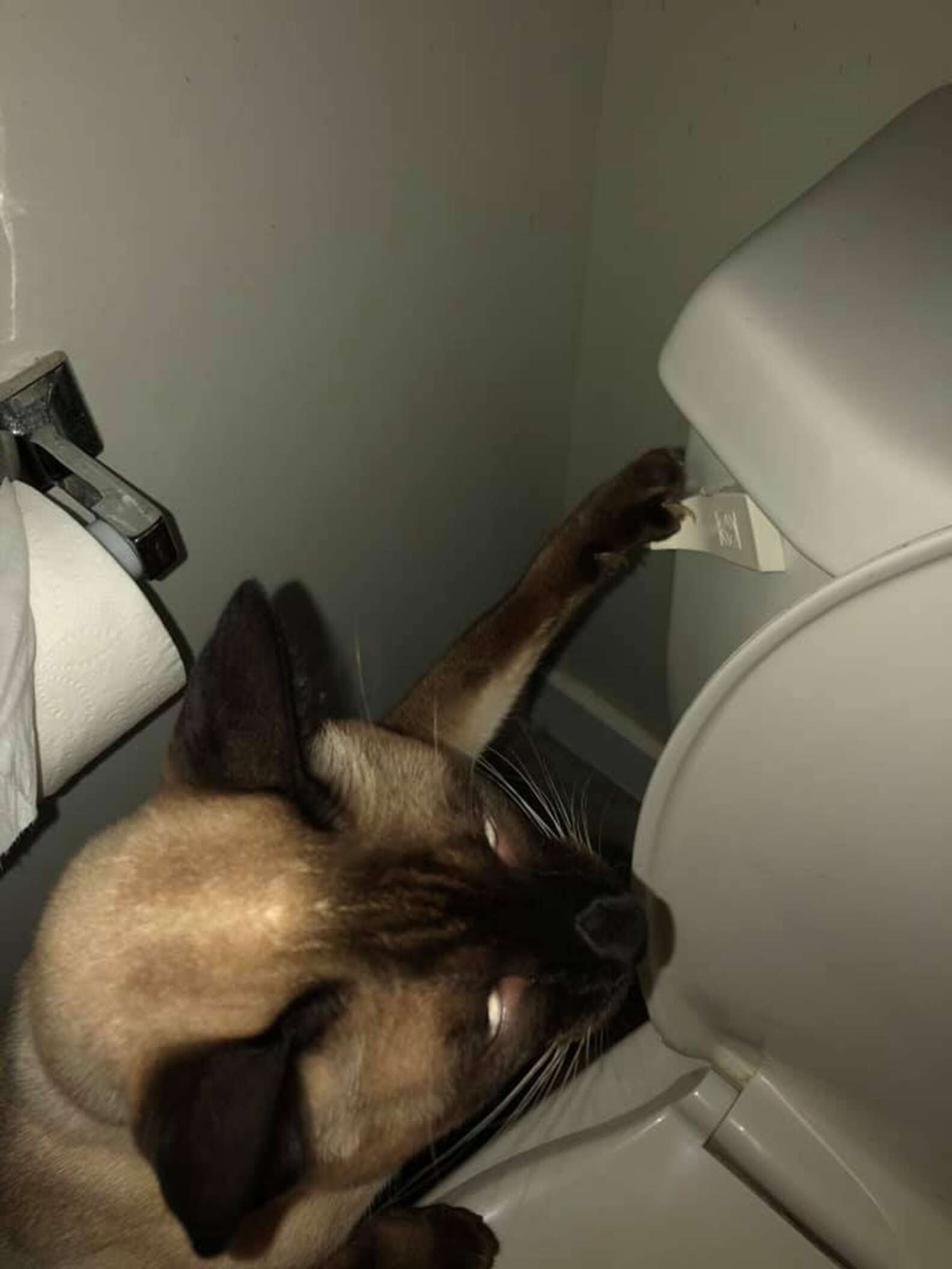 2021年04月15日最近國外女網友Sabrina Louise總是睡不好,因為她家的廁所經常傳出嘩啦啦的沖水聲。剛開始她以為水管漏水了,直到有一天半夜她起床上廁所,才發現真相。原來一切都是愛貓Kai搞的花招!Kai不知道為什麼迷上了玩馬桶的沖水按鈕,經常趁沒人注意偷偷跑進去沖水玩。