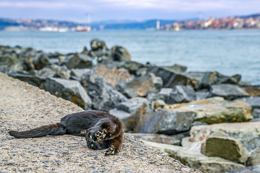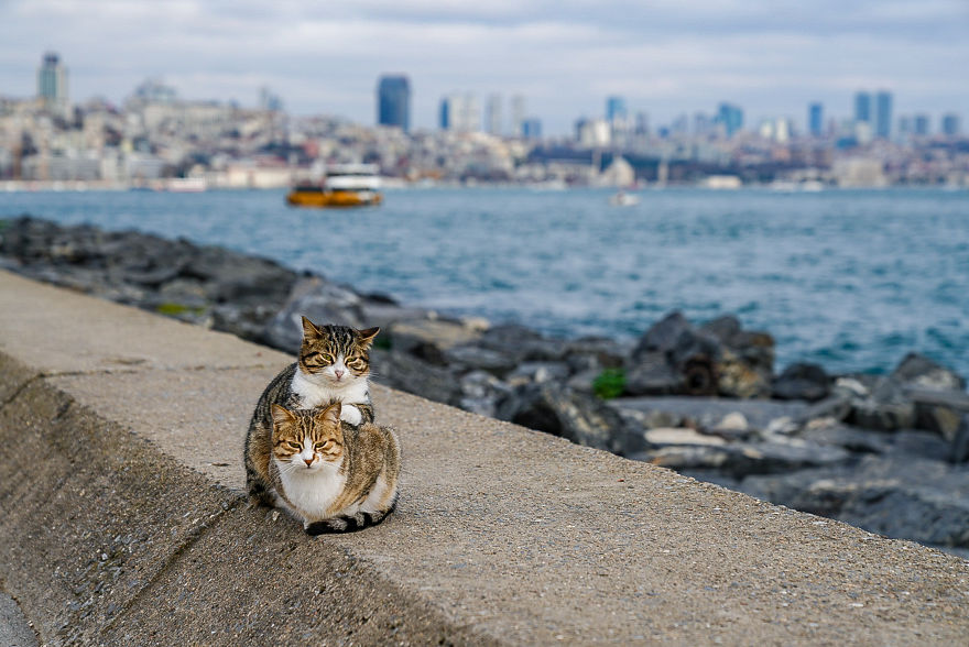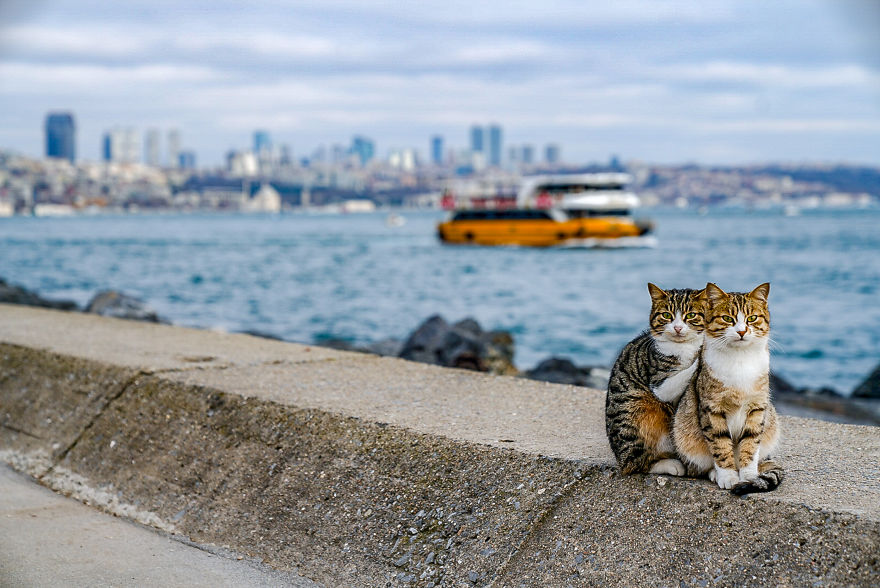 ▼最讓他印象深刻的,就是他在伊斯坦堡博斯普魯斯海峽運河散步時,在河堤上看到的兩隻貓咪。