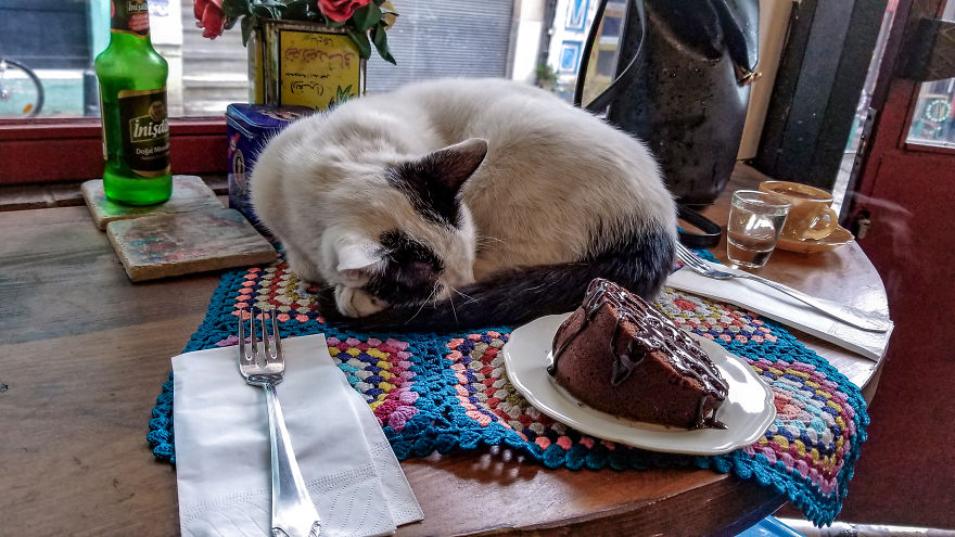 ▼就連在許多的咖啡廳內,也會有這些可愛的「不速之客」陪著你用餐!