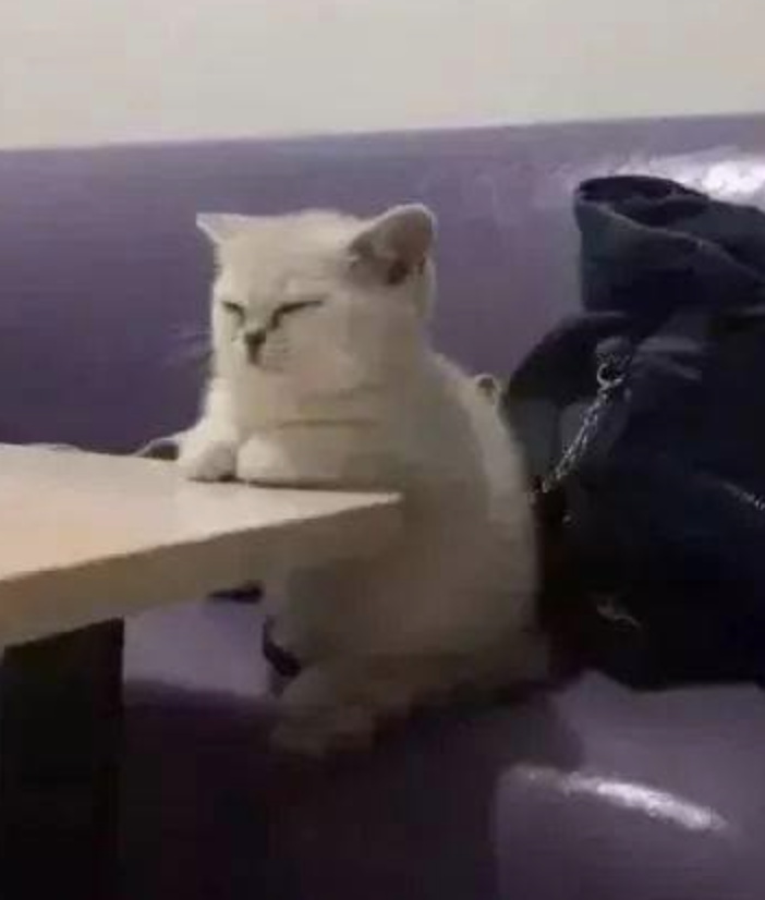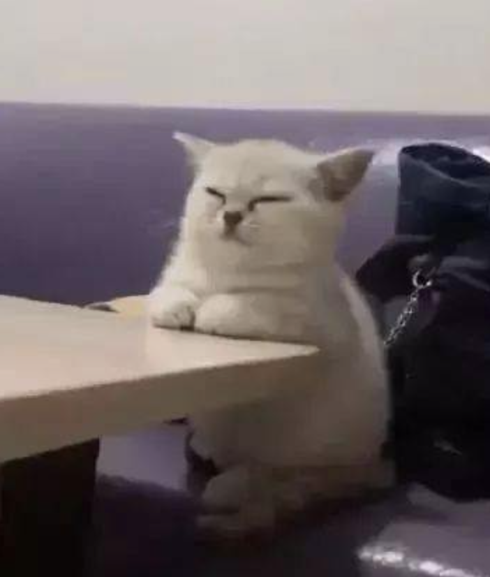▼當時餐廳內的客人比較多,10分鐘過去小魚乾還沒有端上來。貓咪困得不行,雖然還是乖巧坐著,但忍不住瞇起眼睛,好像要睡著一樣。網友覺得,牠昏昏欲睡的樣子就像在課堂上打瞌睡的學生,明明已經很睏了,但因為老師在講課不能睡,只能悄悄瞇一下眼睛。