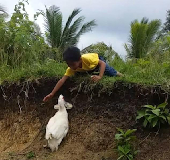 2021年04月09日動物也有「奉獻精神」,有時候還會幫助人類呢。菲律賓女子Myla Aguila在一個小山村散步時,偶然看到了超可愛的一幕。一個小男孩在野外玩耍時,腳上的拖鞋不小心滑下陡坡,這時一隻暖心的小鴨子出現了…