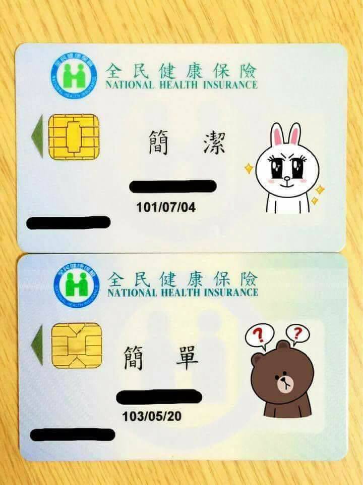 ▼他也在文中分享了兩張健保卡的照片,原來他前兩個小孩分別叫做「簡潔」和「簡單」,第三個小孩到底要怎麼取名也讓原po完全沒有頭緒。