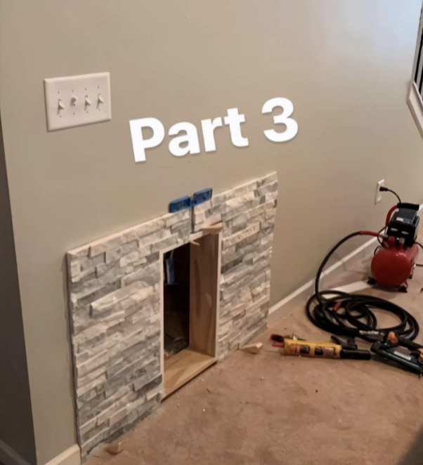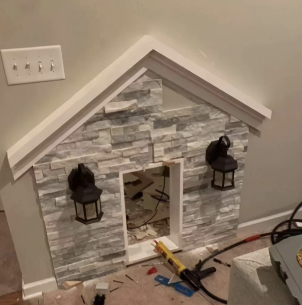 ▼爸爸在牆上開了一個小門,還貼上文化牆磚塊裝飾,讓它看起來更有質感。