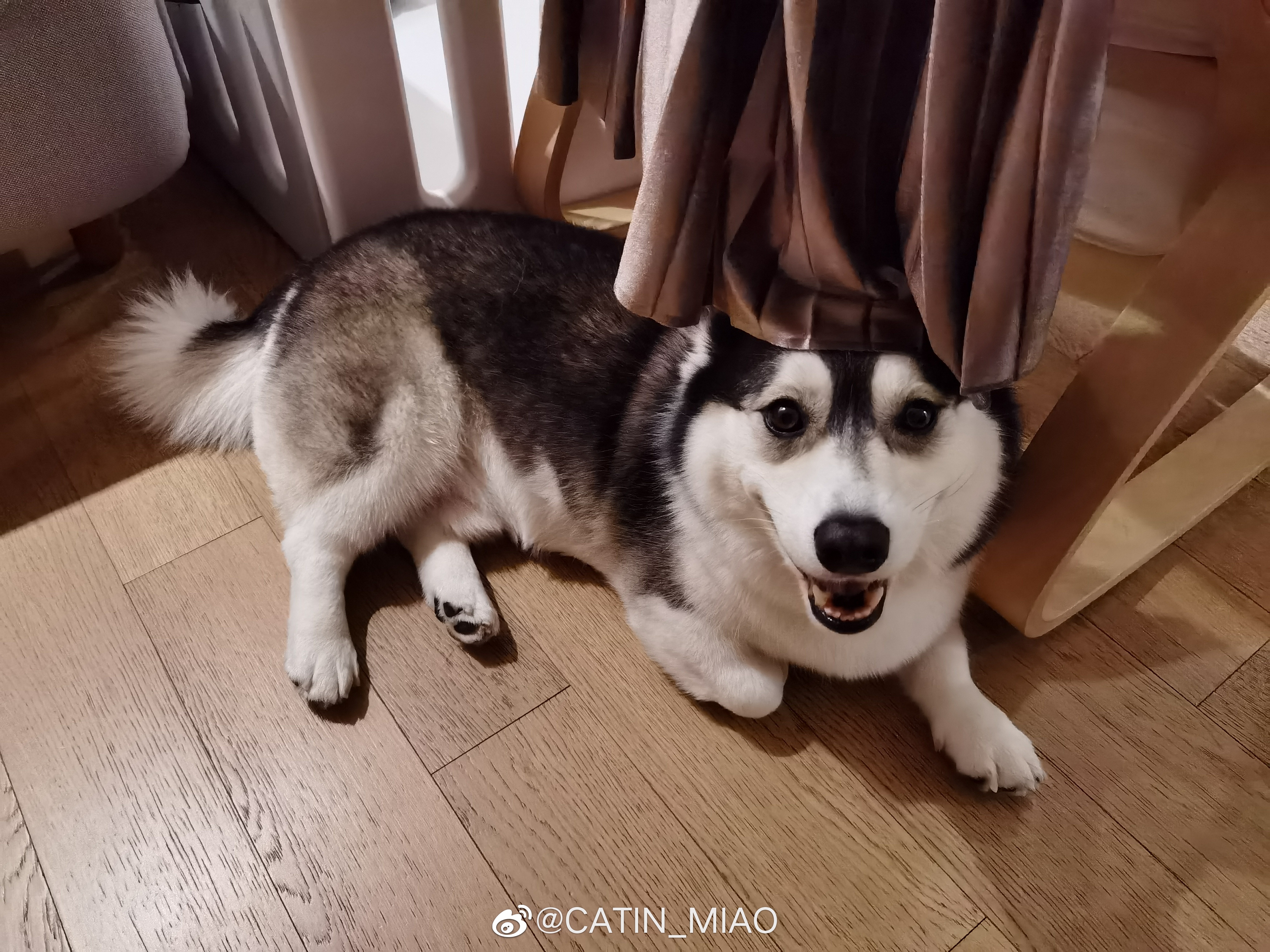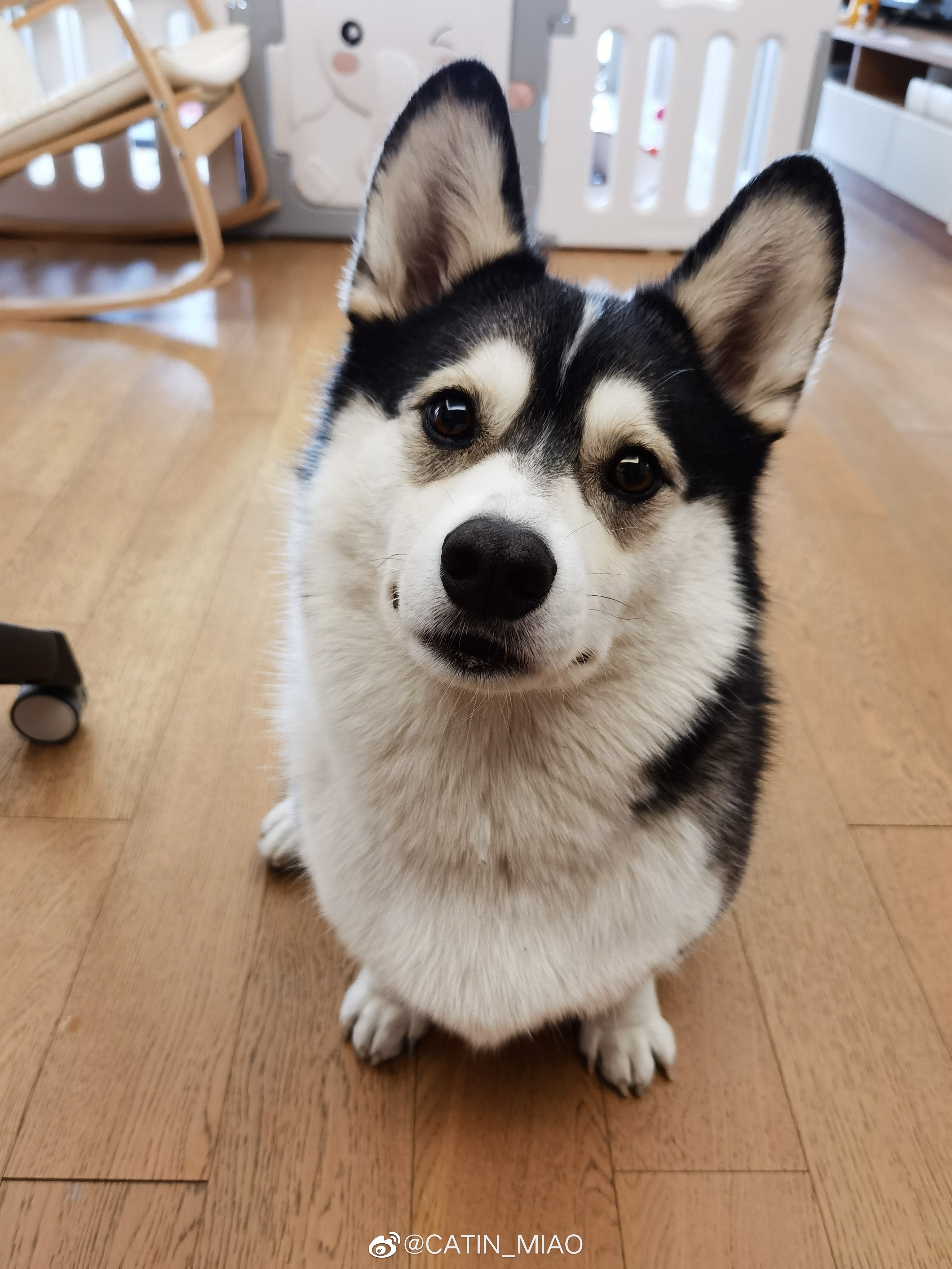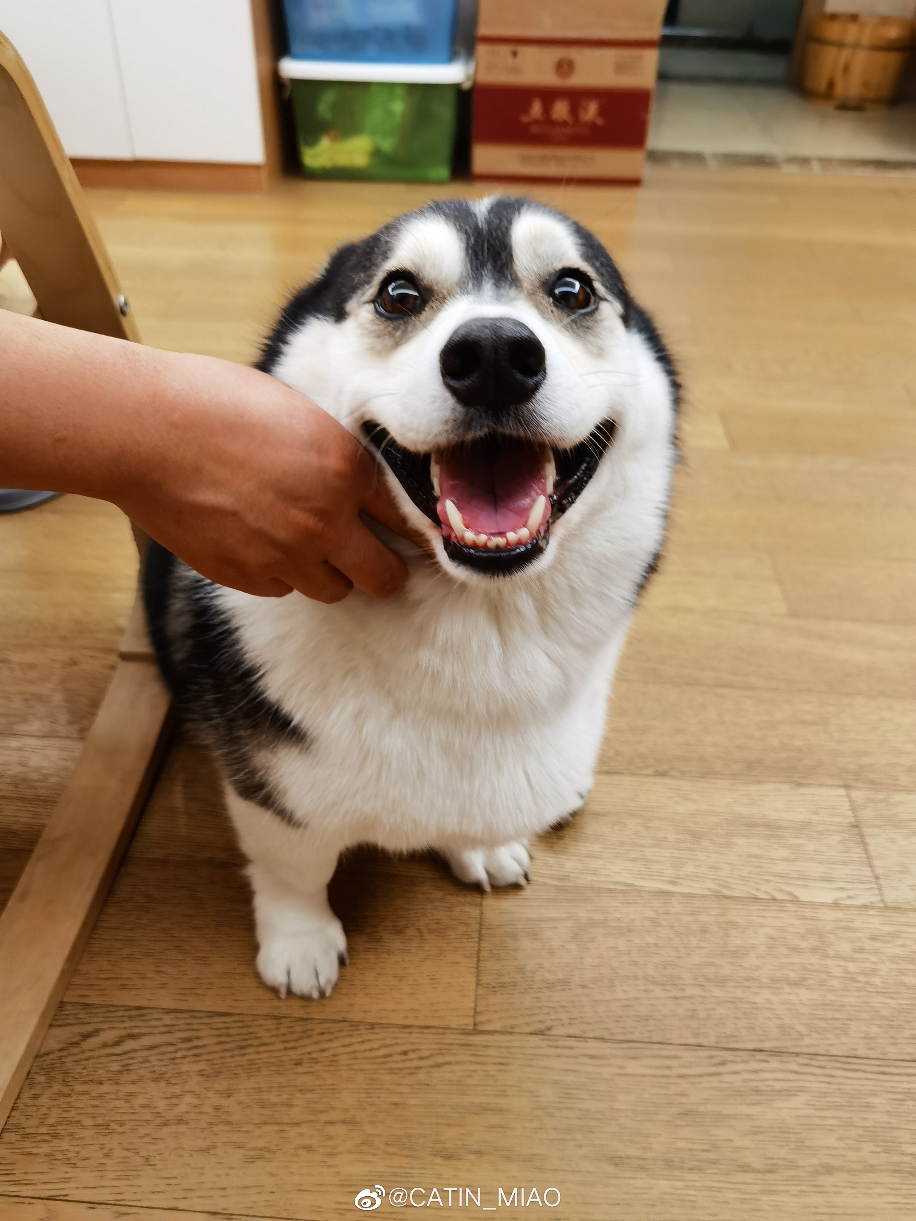 ▼主人(@CATIN_MIAO)介紹說,奧特曼其實是薩摩耶犬和柯基犬的混種寶寶,至於為什麼長成了哈士基的模樣,那就不知道了,只能說混種狗狗的潛力比較大吧。