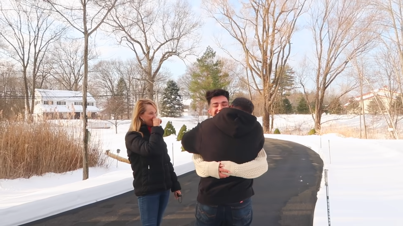 ▼聖誕節當天,James特地飛回家跟父母團聚。他幫爸媽戴上眼罩,並將他們帶到院子裡,告訴他們有一份特別的聖誕節禮物。
