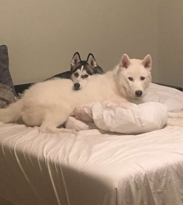 2021年04月19日不管對人類還是動物來說,超重都對健康不利。國外網友Jamie Naab養了2隻哈士奇,Kodiak和Shelby Blu。Shelby Blu很愛運動,體型也保持得很好,Kodiak就不一樣了,牠又懶又宅,每次外出散步都不情不願,體重一路飆升到37kg,還有繼續上漲的趨勢。