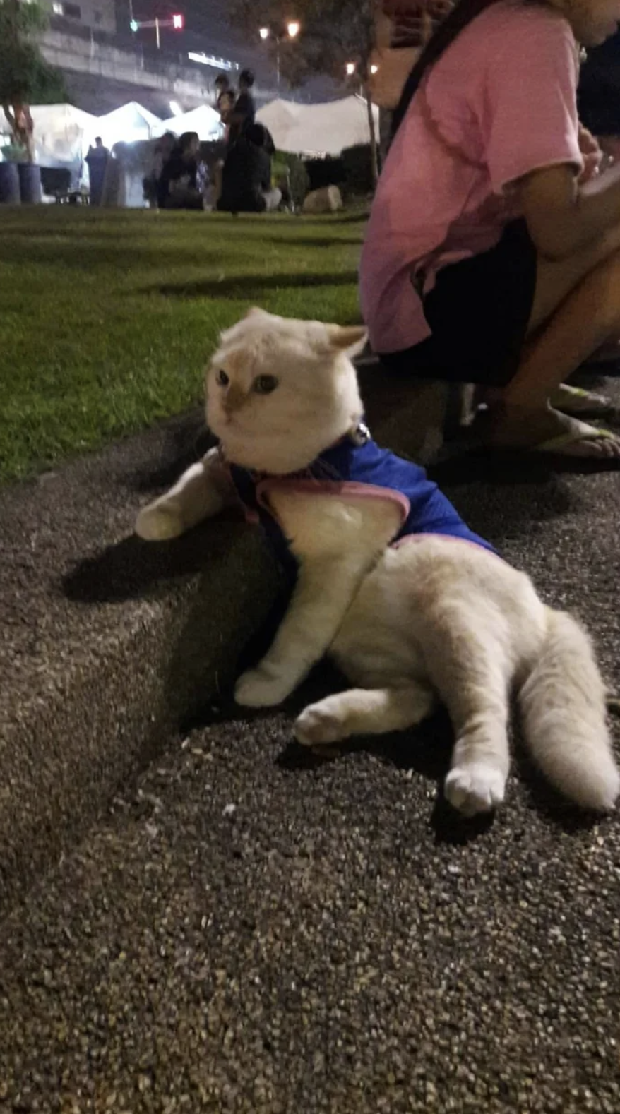 ▼珍珠是西瓜攤老闆在大約5、6年前撿回來的。牠表情兇兇的,其實是一隻很安靜的貓咪,從來不會隨便惹事。牠很喜歡陪著主人到處趴趴走,還成為了西瓜攤的吉祥物,吸引了很多客人。