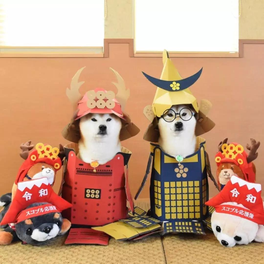 ▼除了跟玩偶合照,主人還會給柴柴們設計裝扮。現在Nonta和Kenta已經都是Cosplay達人了。