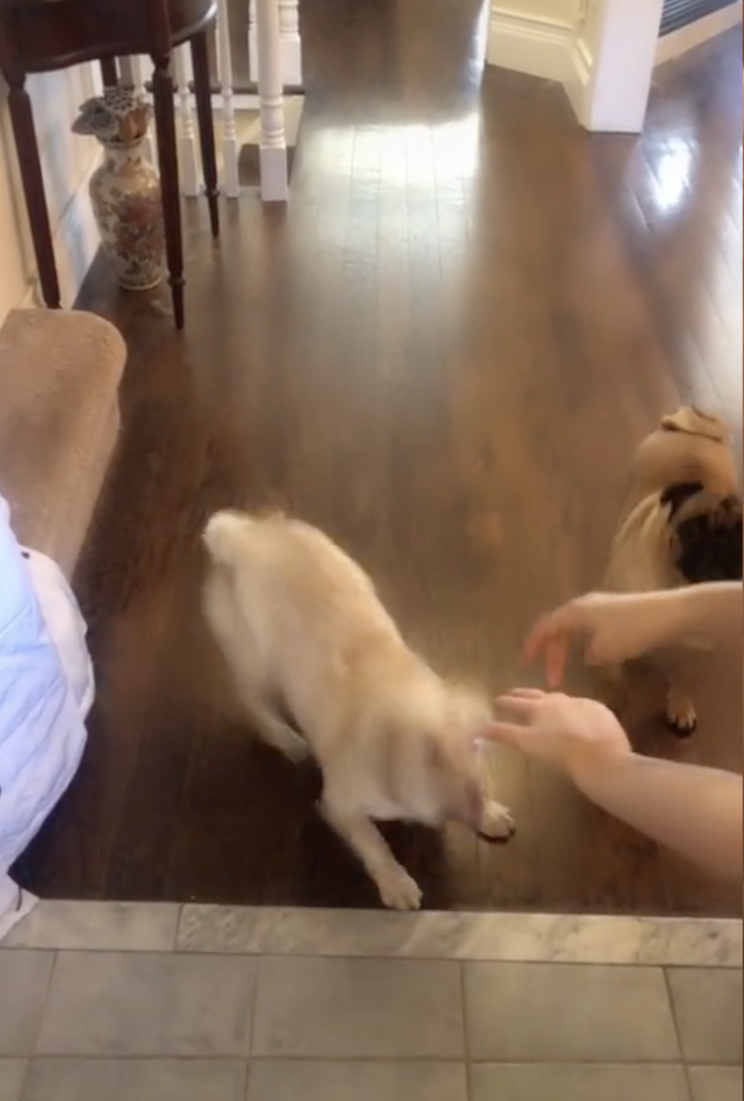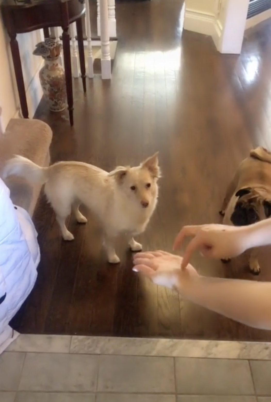 ▼這樣的「手語」可能是第一次看到,Sky還沒意會過來,當主人再做第二次時,聰穎的Sky馬上秒懂,並且超興奮朝主人身上撲上去,可愛的模樣鏡頭都錄了下來,在抖音上傳幾天內,馬上獲得上百萬人次的觀看數,讓網友直呼Sky:「超級聰明的~」