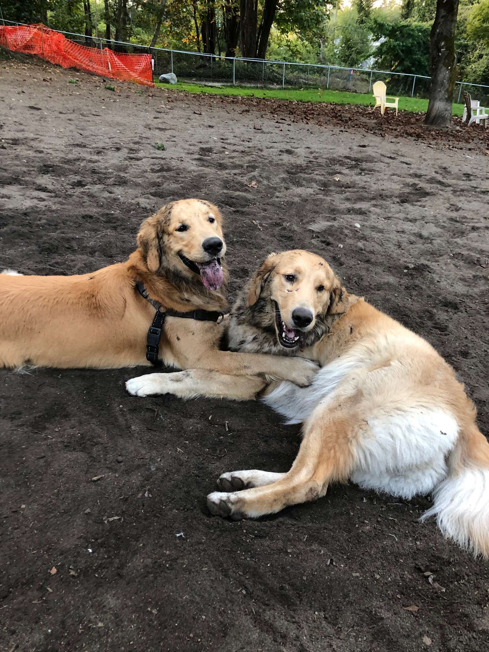 2隻金金公園相遇「拉手手」一見鍾情! 主人交談後超驚訝:這也太湊巧了