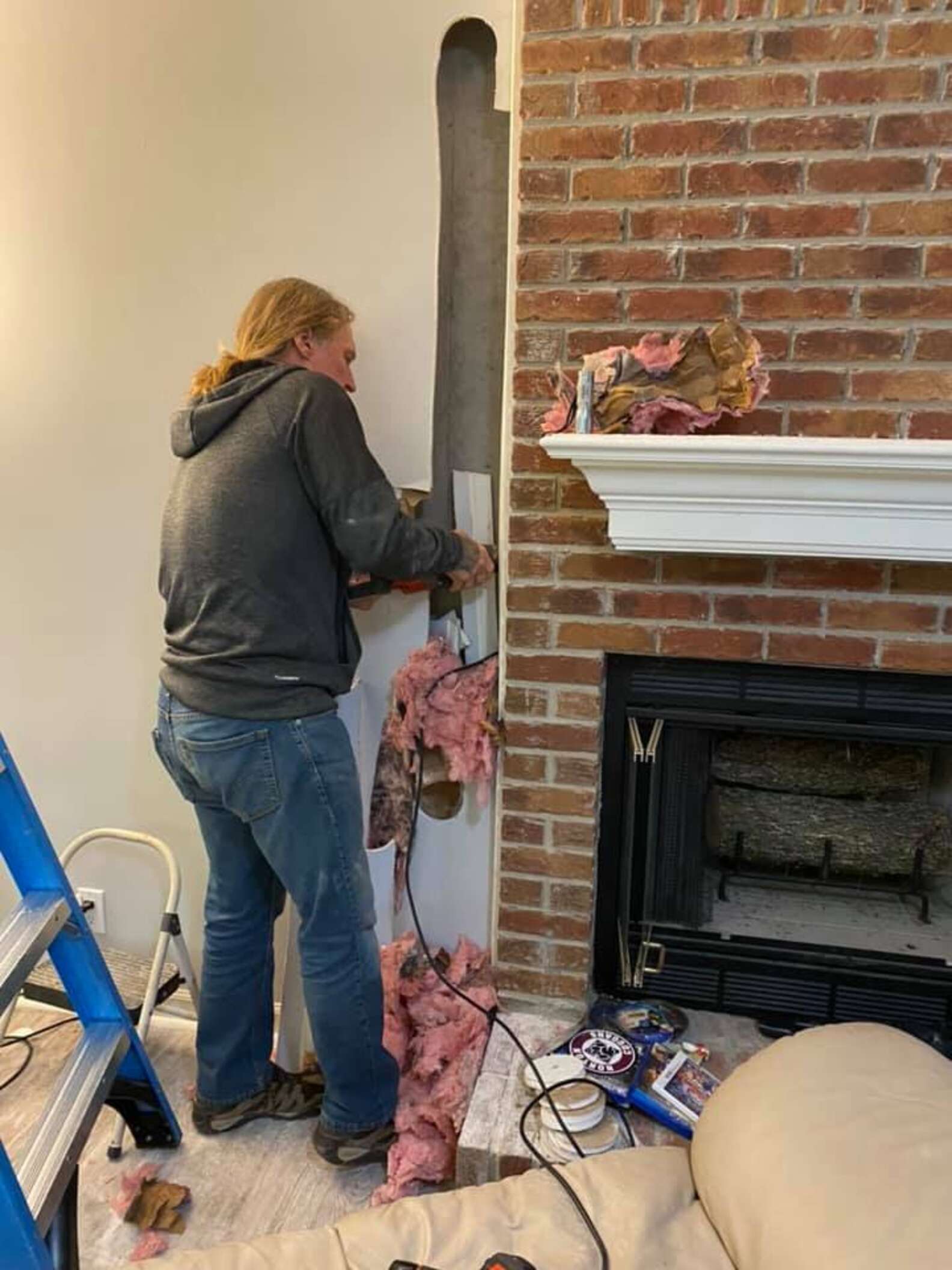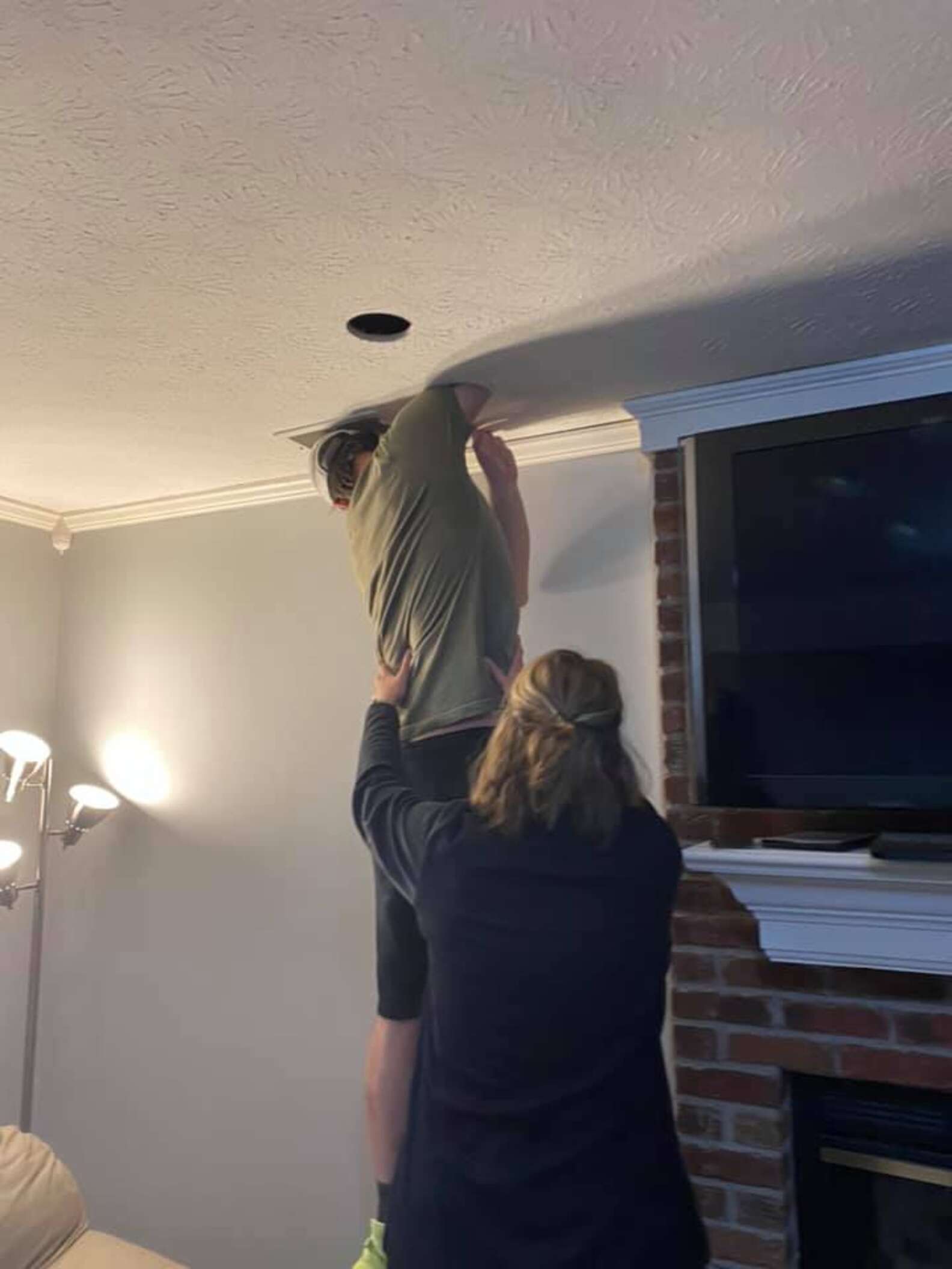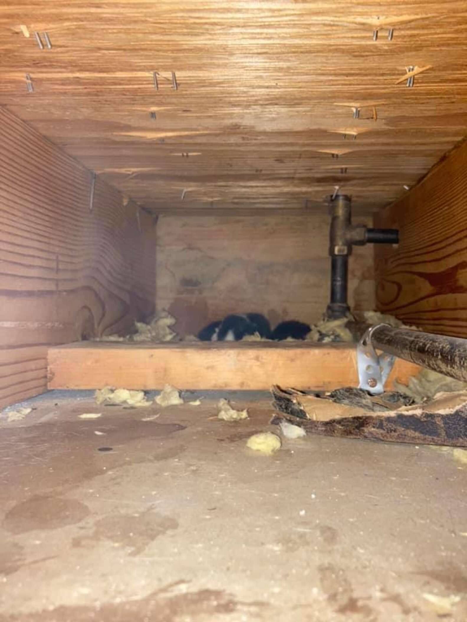 ▼Emily請人幫忙,將Mayhem和小貓們從天花板上救下來。他們找到3隻小貓,本以為這就是全部,沒想到煙囪裡又傳來了小貓的嚶嚶叫聲。