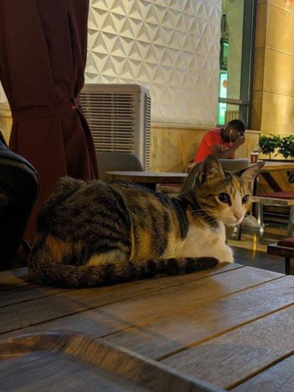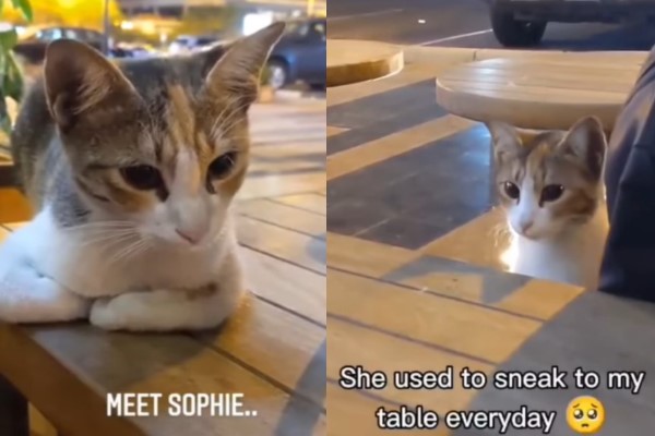 ▼Akwan非常喜歡貓咪,喝咖啡時看到貓咪,就主動跟牠打招呼。貓咪看Akwan充滿善意,對他越來越親近,還會跳上桌子陪他喝咖啡。Akwan覺得很有趣,就給貓咪取名為Sophie,並每天帶食物給牠。