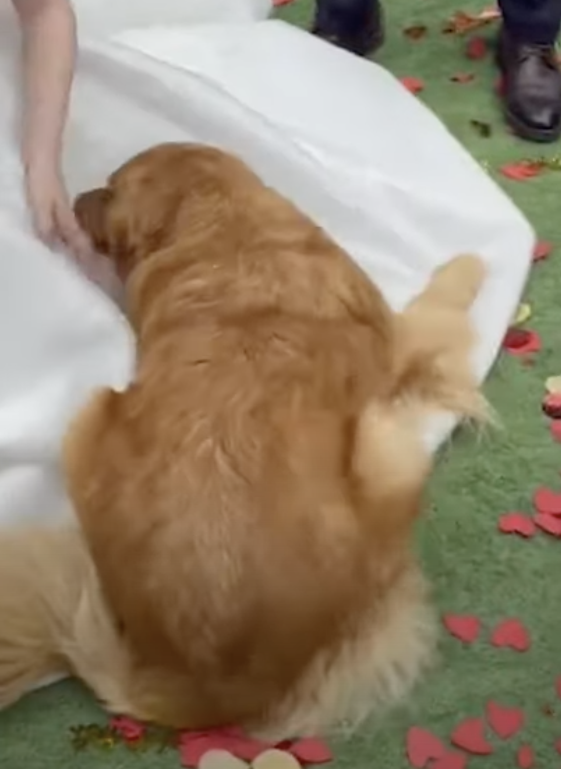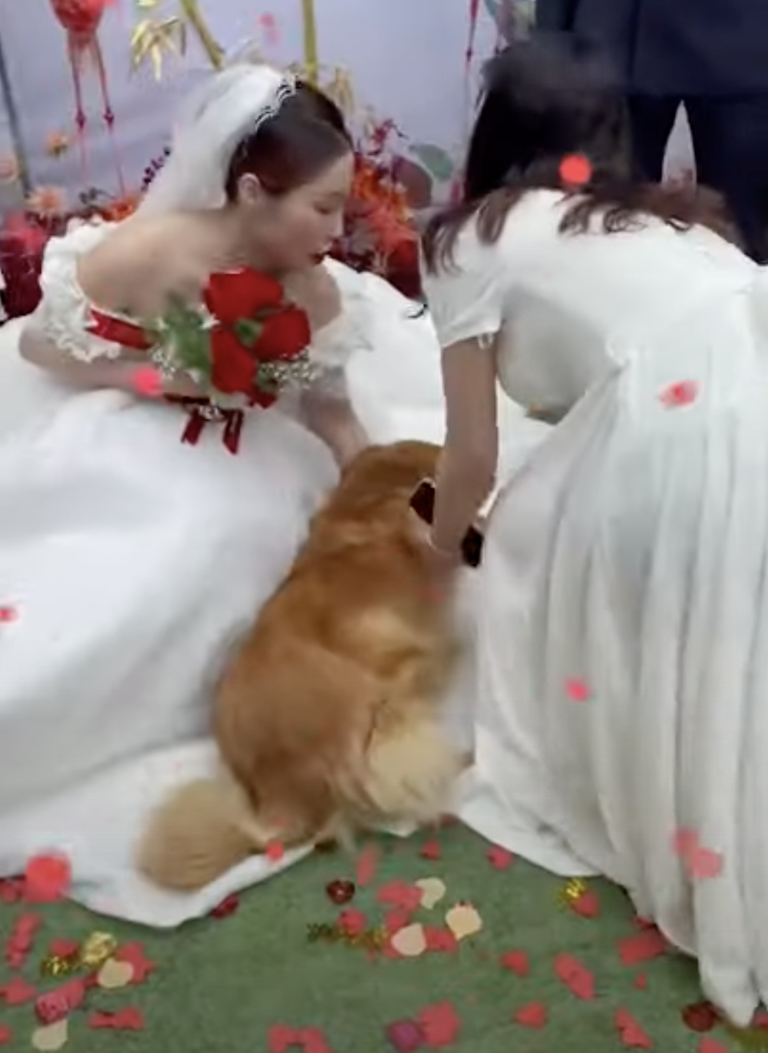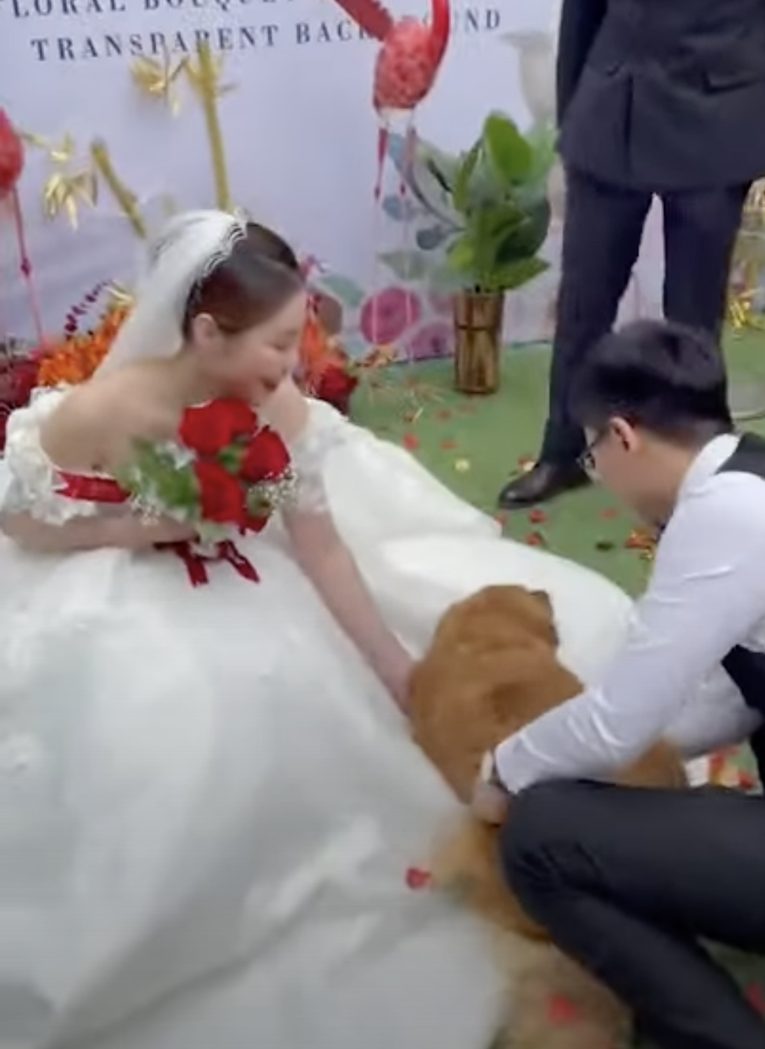 後來新郎出面解釋說,這隻金金是2年前他和新娘一起從屠宰市場救出來的,他們一直把狗狗當成親生女兒看待。現在兩人結婚了,也不會拋棄牠,已經帶著牠來到新家了。牠正跟爸爸媽媽幸福生活在一起,大家不用為牠擔心啦!
