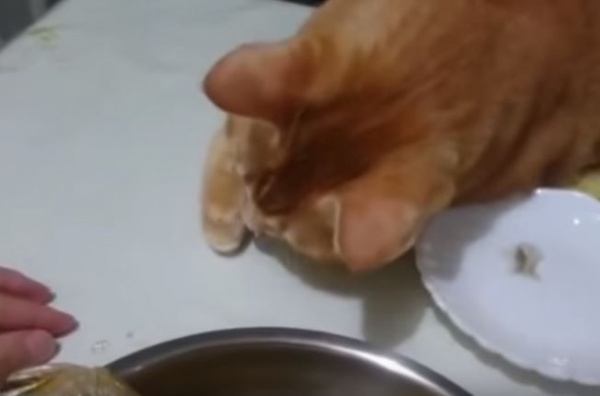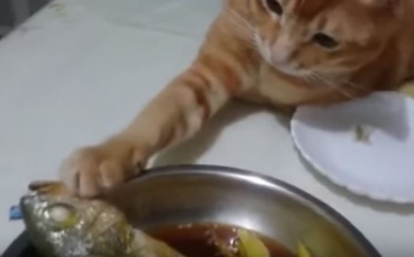 ▼Yoshi是一隻懂禮貌的小貓,雖然牠非常愛吃魚,但也不會去搶鏟屎官的食物。那天鏟屎官做了美味的紅燒魚,對小貓來說這是無法拒絕的美味!Yoshi看鏟屎官準備開飯,也跳到了餐桌上。牠可不是想偷魚吃,只是想離美食近一點。