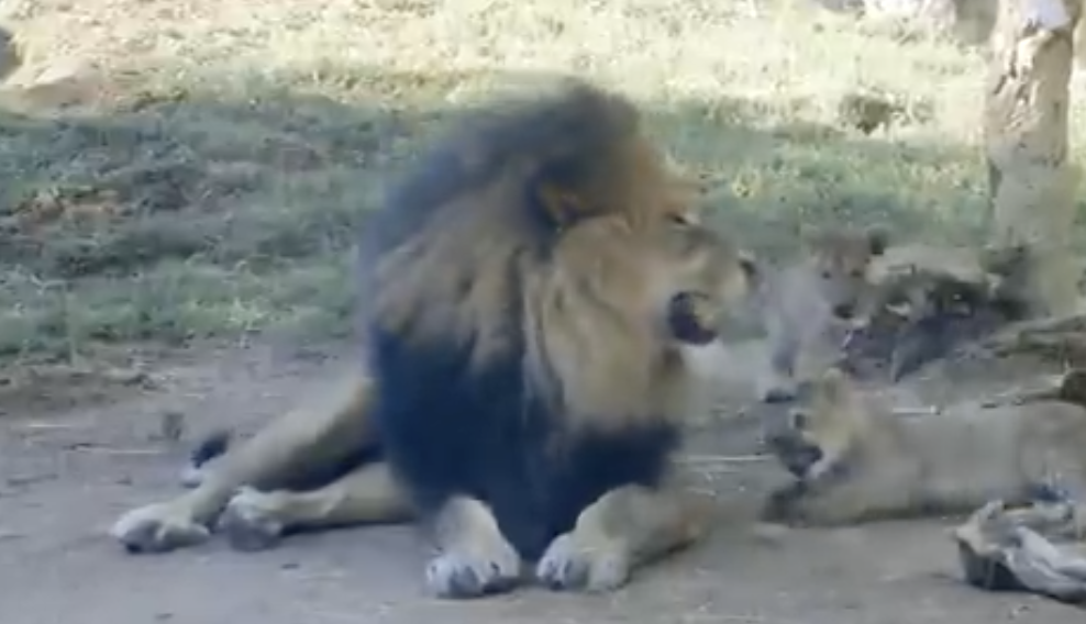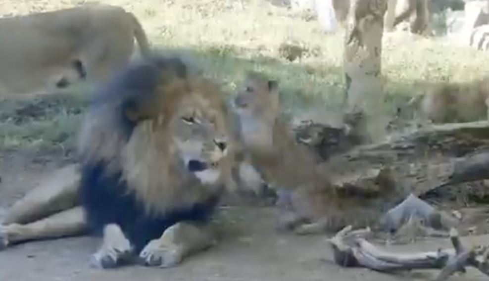 ▼雄獅發火怒吼,在旁邊玩耍的小獅子們全都被嚇跑。不遠處有一隻聰明的小獅子,全程趴在地上冷眼看爸爸和兄弟的互動,好像在嘲笑自家的傻弟弟。推主將這段有趣的影片po上網,並說:「幼獅一直糾纏牠老爸!」