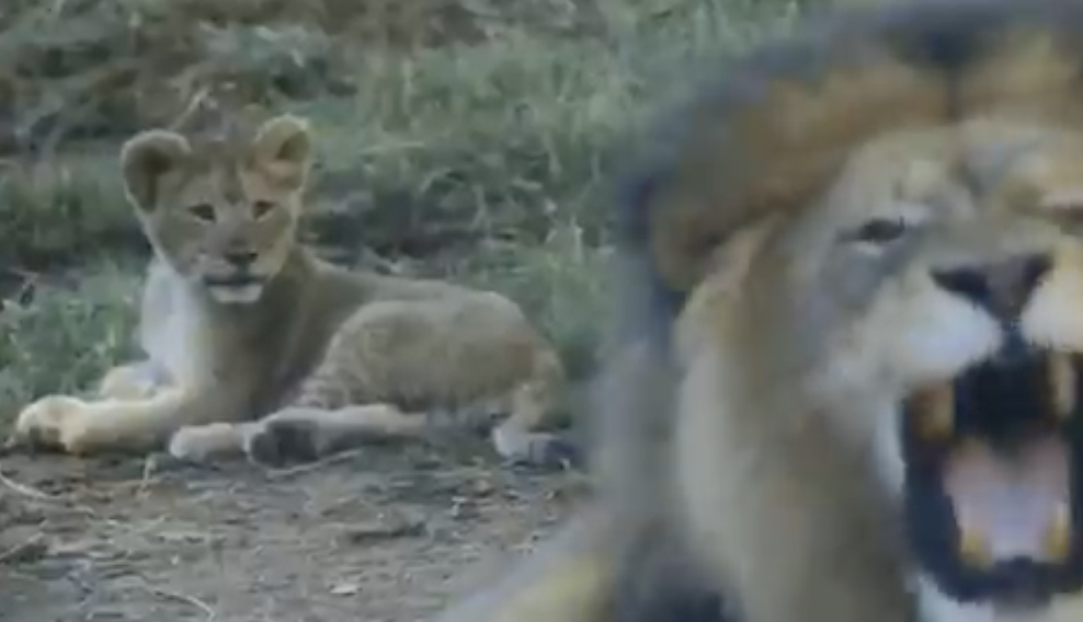 ▼當時雄獅正懶洋洋趴在草地上,享受幸福的午後時光。旁邊的小獅子跑過來跟爸爸玩耍,還跳到雄獅的身上玩鬧。雄獅沒想到小獅子會這麼大膽,被嚇了一跳。牠吼叫一聲,警告小獅子快點下來,但小獅子還沒有玩夠,怎麼可能乖乖聽話?