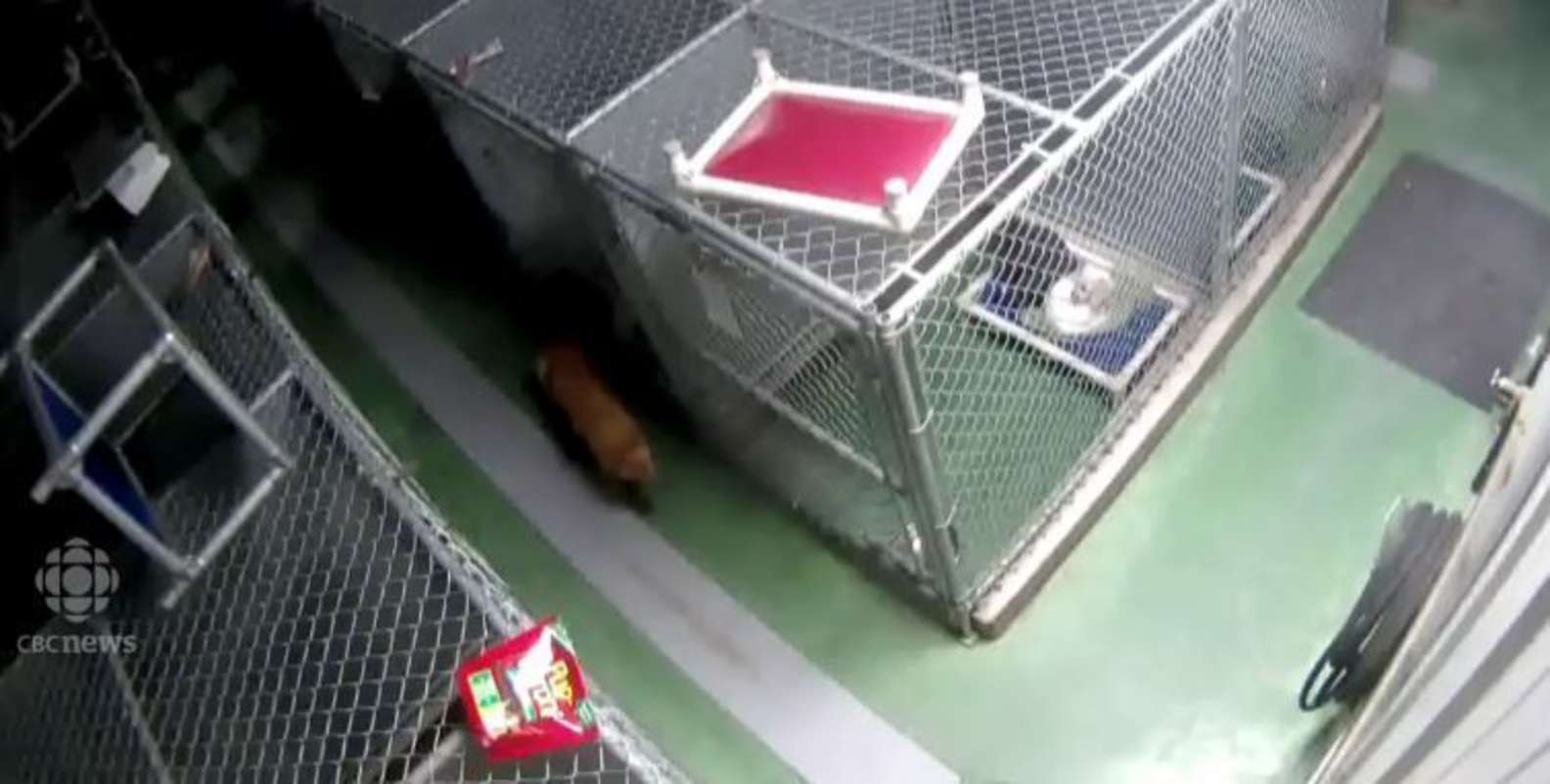 2021年05月13日加拿大一間寵物旅館「Barker's Pet Motel」經常收留那些需要幫助的狗狗,其中有一隻叫Maggie的狗狗,被新主人帶回家前臨時寄養在這裡。沒想到那天晚上工作人員都離開後,牠竟然從籠子裡鑽了出來。Maggie「越獄」後沒有亂跑,而是趴到了另一個籠子前…