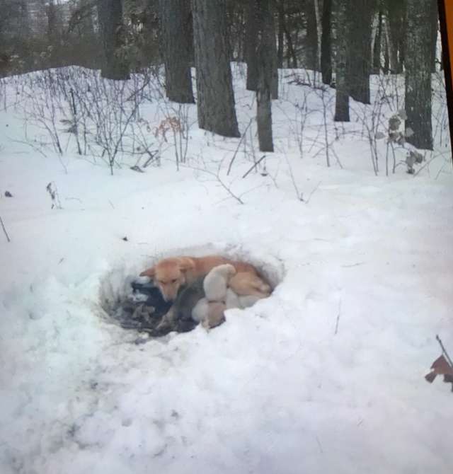 2021年05月06日動物的母愛也很偉大!如今美國明尼蘇達州天氣寒冷,很多地方都被厚厚的白雪覆蓋。一隻瘦弱的狗媽媽帶著6隻幼犬苦苦求生。牠找不到溫暖的地方安置自己的小孩,就在雪地裡挖洞,用自己的身體給狗寶寶取暖,那一幕非常感人。