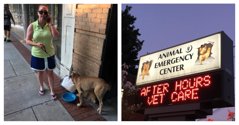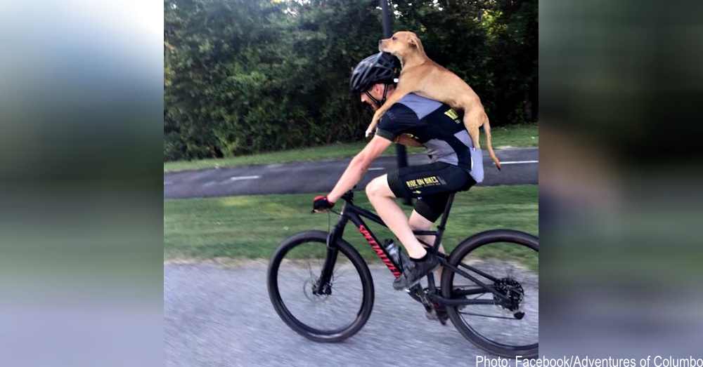 ▼這隻狗狗的腳疑似被車子撞傷,覓食時很不方便。牠瘦到皮包骨,看起來很可憐。Jarret不忍心將牠留下,決定背著牠騎到市區就醫。進入市區沒多久,他們就遇到了一名叫Andrea Shaw的女子。Andrea平時從事動物救援,看到Jarret背著狗狗後就熱心地上前詢問,是否需要幫忙。