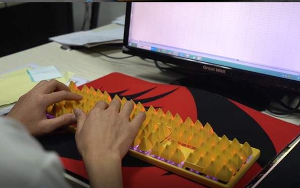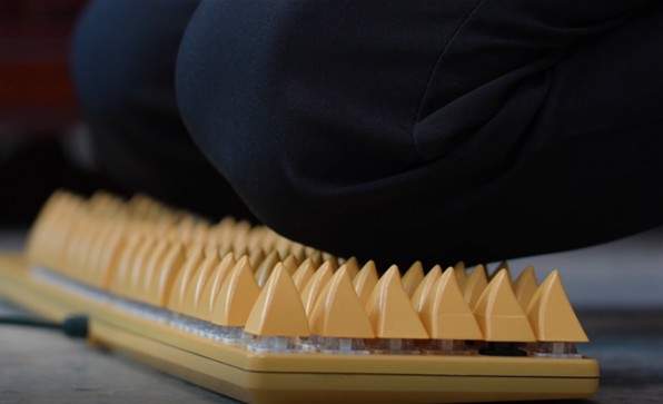 ▼這款鍵盤不僅能用來跪,還能真正使用。它的所有按鍵位置都跟普通鍵盤沒兩樣,只是鍵帽比較獨特。這麼尖銳的按鍵,用來打字的話不會刺痛手指嗎?其實不會喔,因為鍵帽有把上面磨鈍,是可以正常打字的。