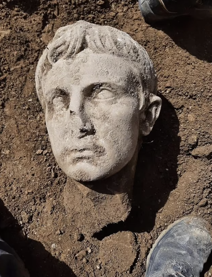 ▼考古學家初步研究後,雖然暫時無法確定頭像製成的時間,但透過頭像標誌性的「燕尾髮型」、濃密的頭髮,還有突出的耳朵等特徵,辨認出這就是羅馬帝國的開國君主奧古斯都。
