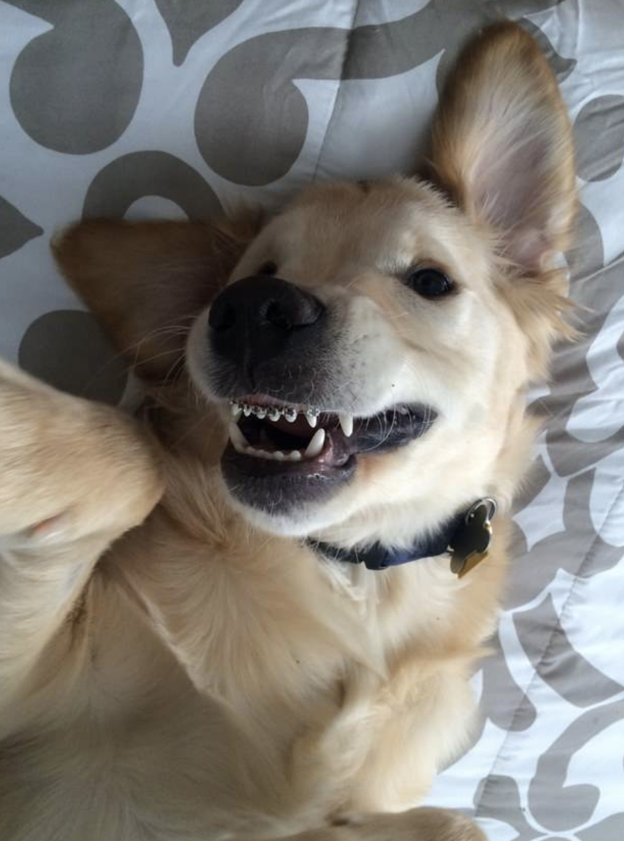 牙口不整齊!小金金「戴牙套矯正」 一張嘴笑翻網友:「鋼牙汪」也太可愛❤️