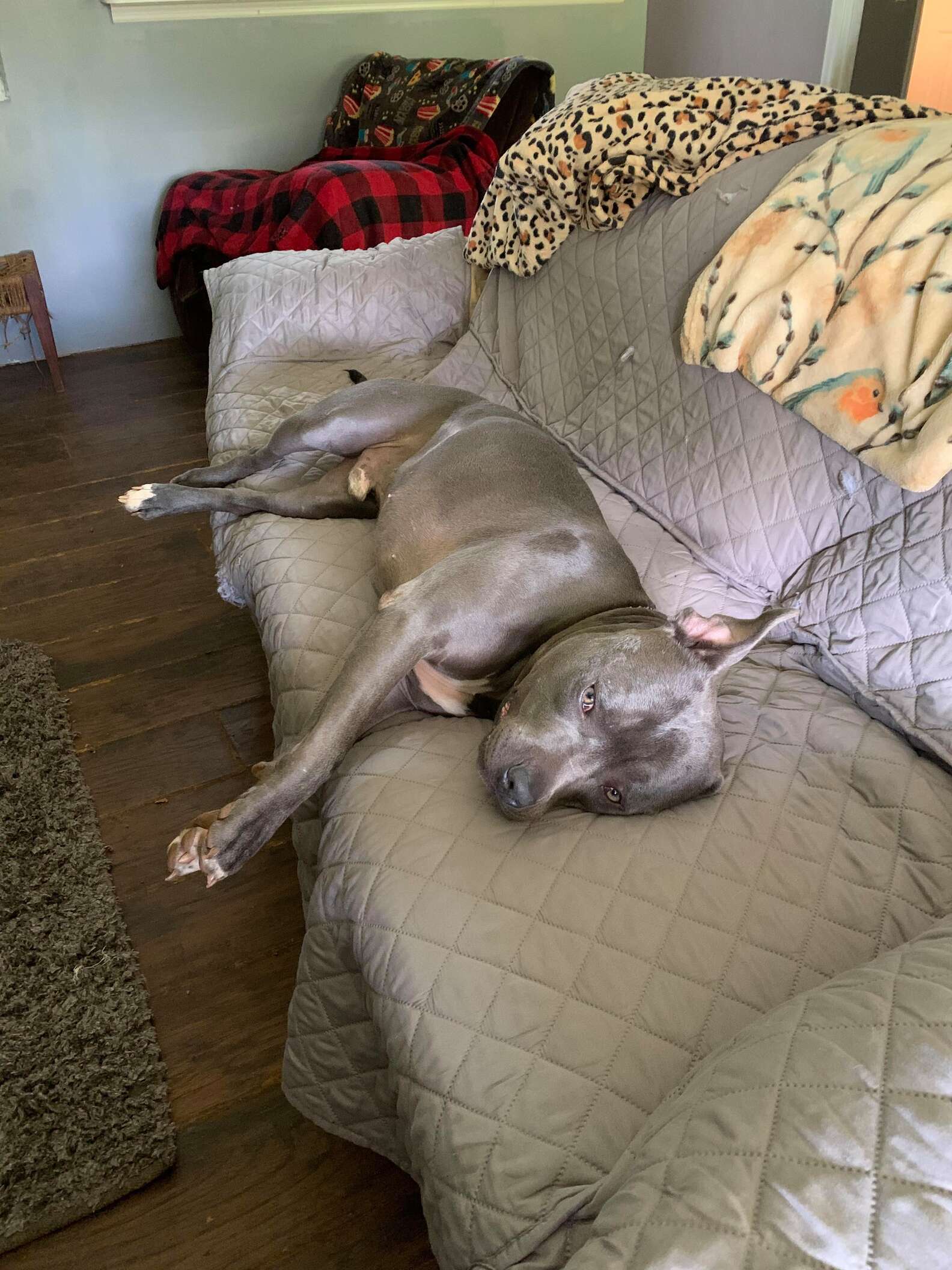 2021年05月13日美國網友Vickie Richards Shelton養了一隻比特犬Bo。那天她下班回家,一開門就被眼前的場景嚇了一跳。只見沙發變得亂七八糟,棉花全都跑出來。難道家裡進賊了?正當Vickie緊張的時候,罪魁禍首出現了,竟然是Bo~