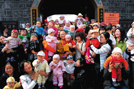 ▼從5月12日到8月1日,羅漢寺裡先後誕下108個寶寶。因為醫護人員、寺院僧人和志工們的幫助,這麼多寶寶、孕婦沒有一例出現感染,大家都親切地稱呼這些孩子為「羅漢娃」。這些孩子都長得很好,每當地震週年紀念日,他們都會回到羅漢寺團圓。