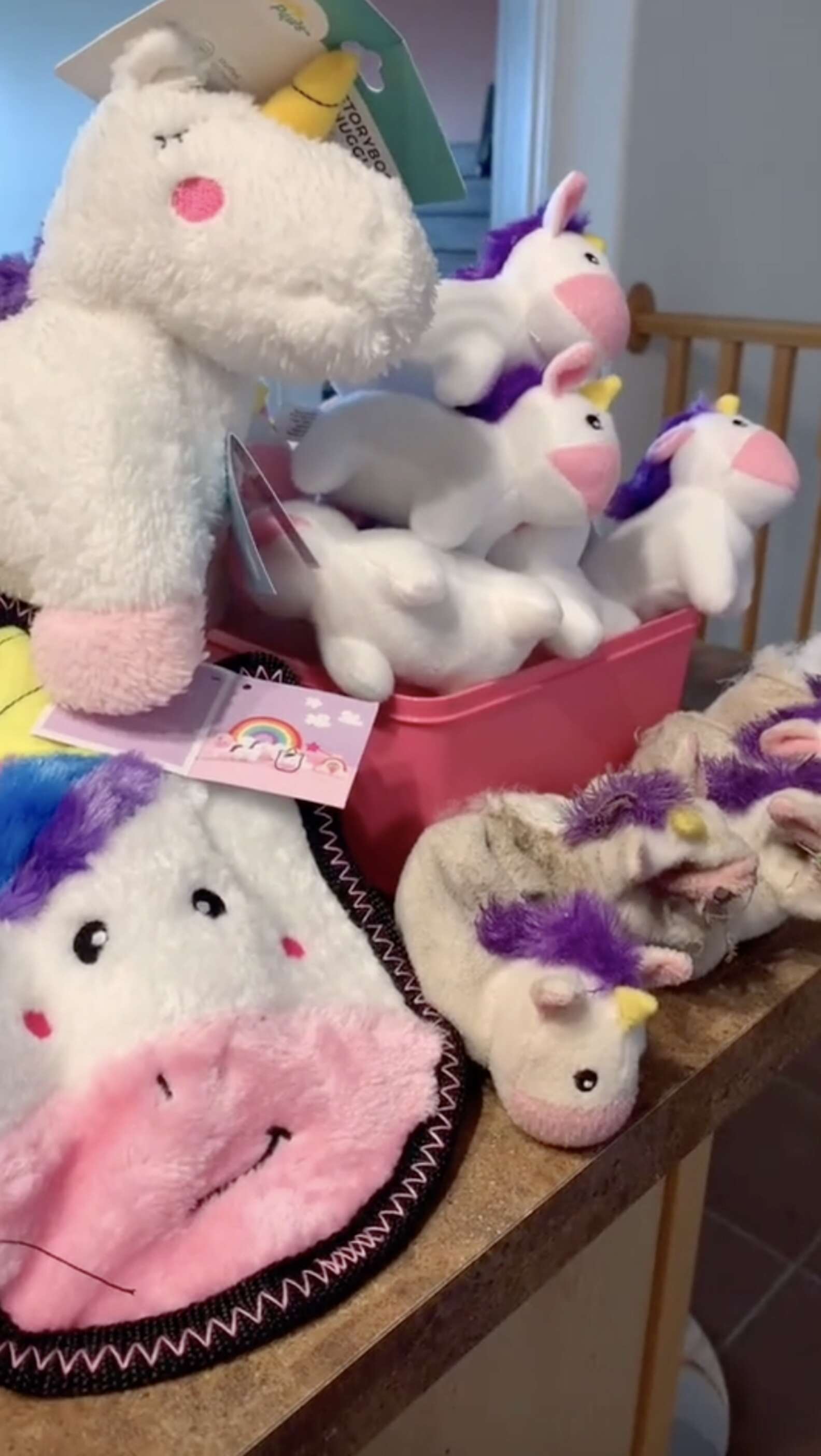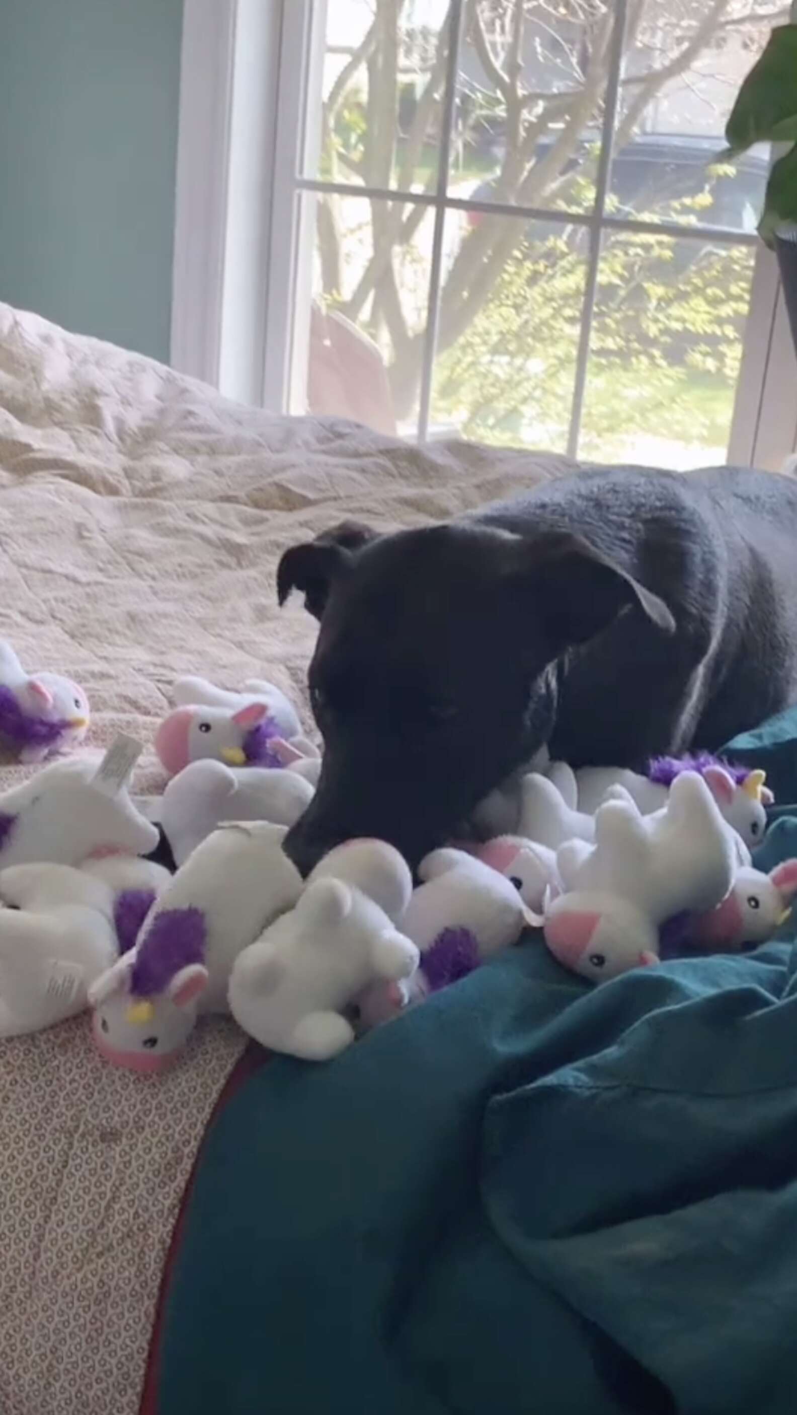 Rosie再也不用擔心沒有獨角獸玩偶相陪了,玩偶公司給牠寄來那麼多玩偶,這是牠收到的最棒的禮物~