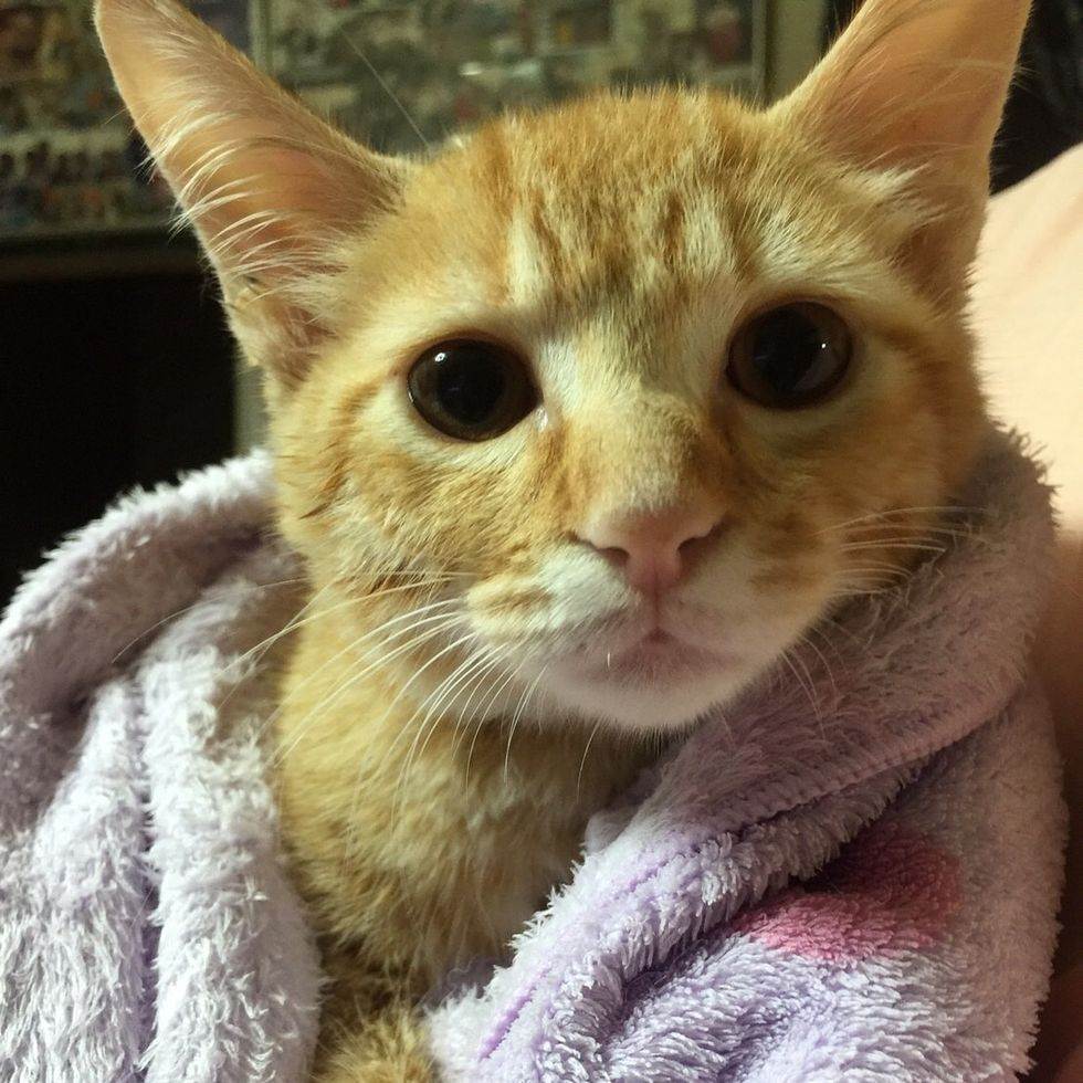 ▼主人將Gaku的狀態看在眼裡,也非常著急。1個月後,他遇見了一隻流浪小橘貓,雖然他還沒有走出失去Tarawo的悲傷,但還是決定收養這隻小貓,希望牠能給Gaku帶來安慰。