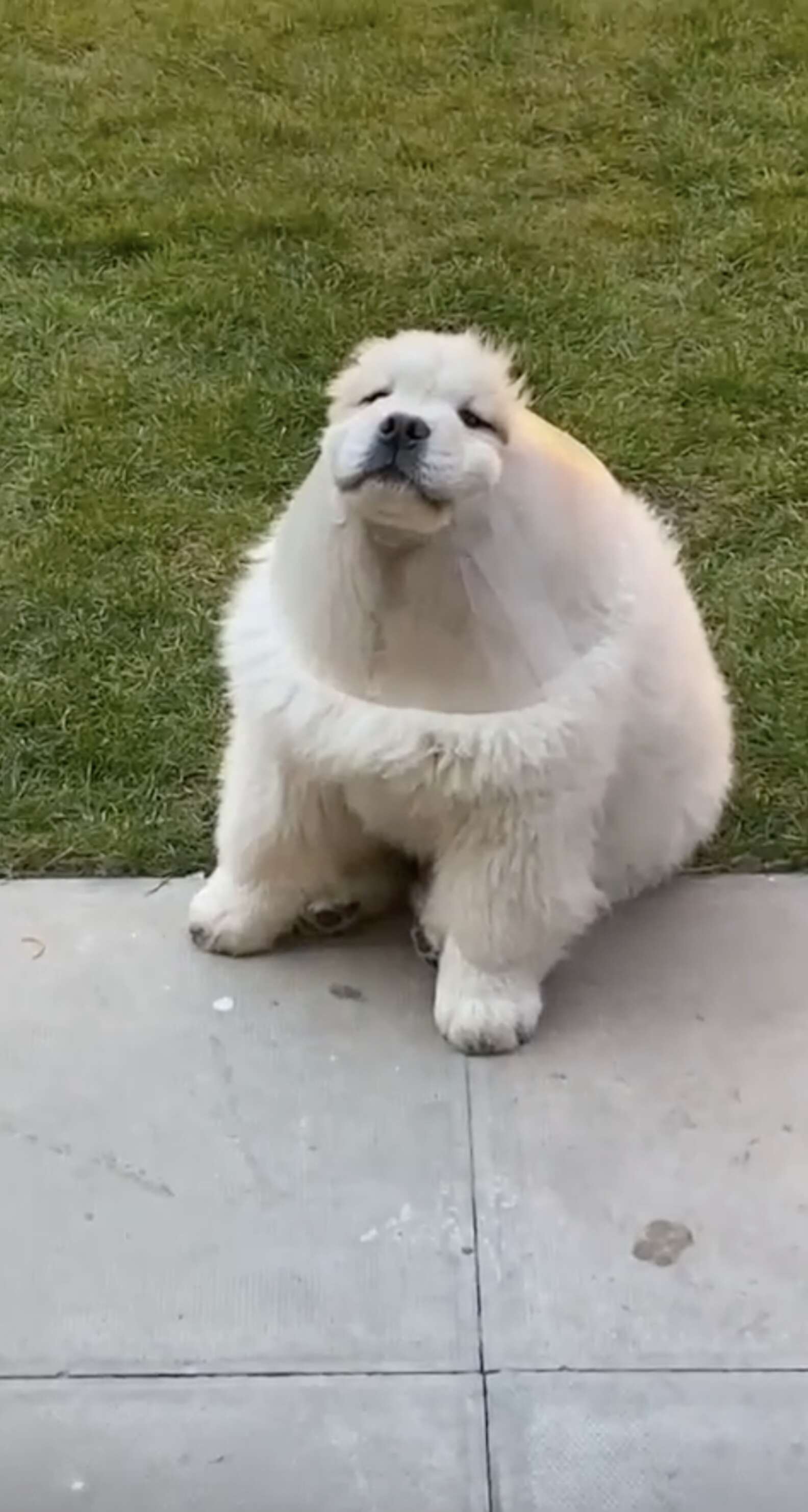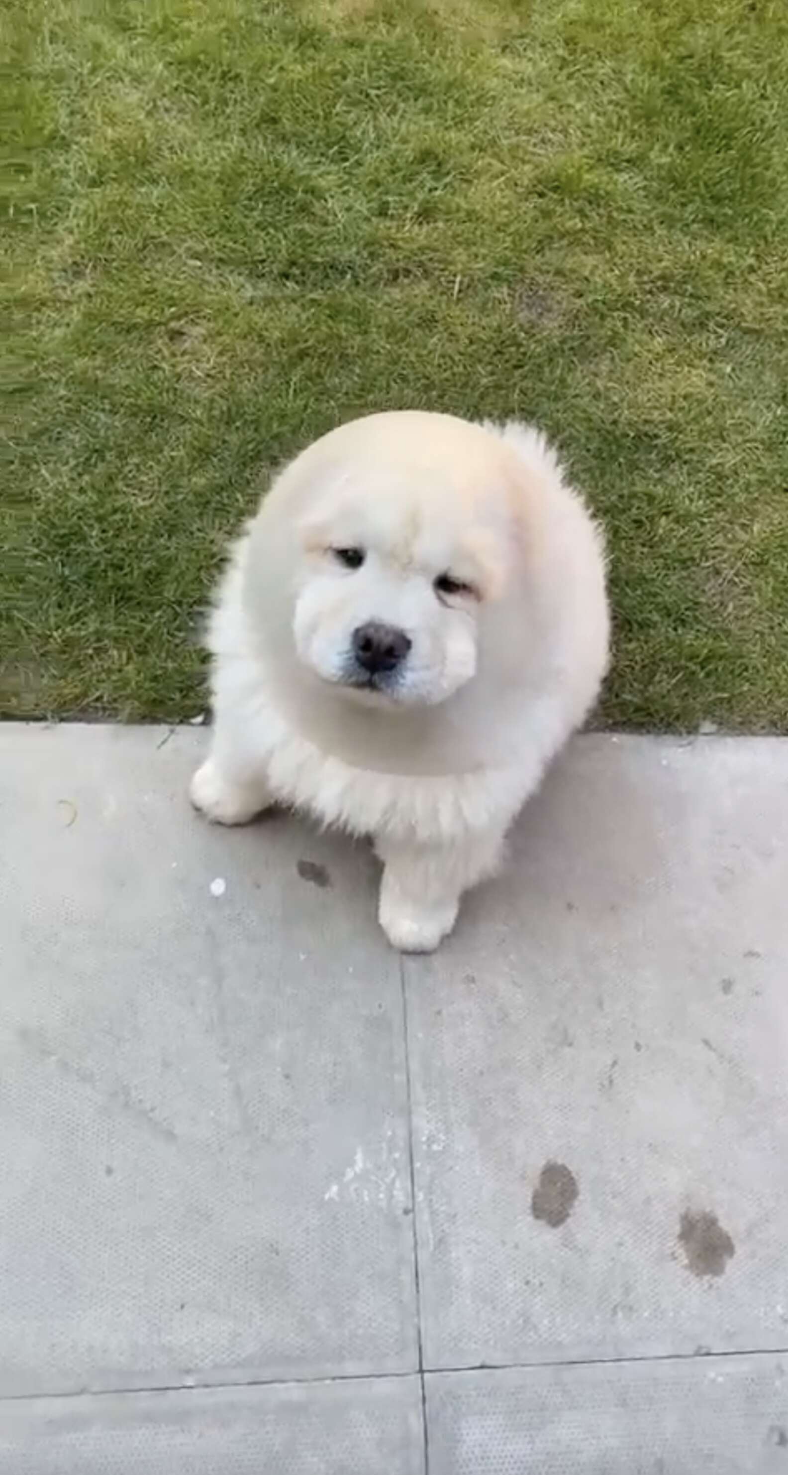 ▼平時主人在廚房做飯的時候,Yuki都會跑過來撒嬌討食。這次主人做飯,卻沒看到Yuki的身影。當時主人就覺得不對勁,連忙去院子裡查看,這才發現Yuki傻呼呼地坐在草地上,恥辱圈倒扣在牠的腦袋上,正好卡在臉頰下,看起來超可愛。