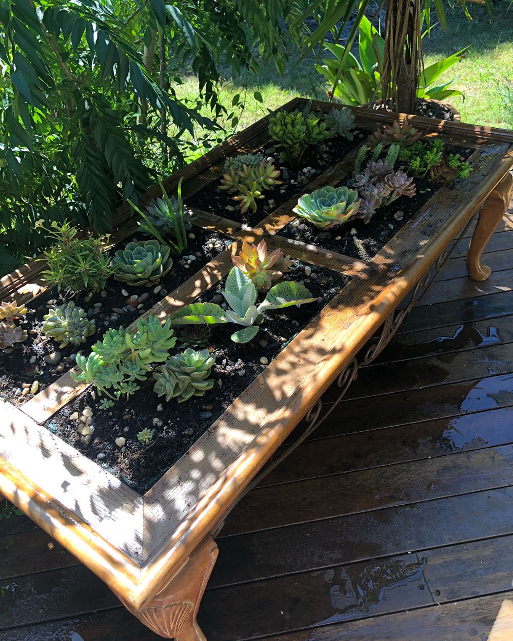 2021年05月13日越來越多人愛上多肉植物,多肉植物品種豐富,容易照顧,擺在家中非常漂亮。一些園藝高手發揮創意,將玻璃桌子改造成多肉小花園。喝下午茶時就能欣賞多肉的美,這種方法節省空間,非常適合家庭種植。