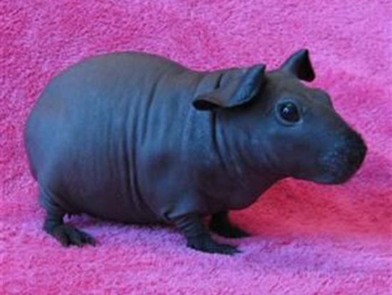 ▼無毛天竺鼠是實驗室無毛菌株和普通天竺鼠繁衍出的品種,這種無毛菌株與1978年首次發現的一種基因變化有關。到了1982年,無毛天竺鼠在實驗室繼續培育,現在主要用於皮膚問題的研究。