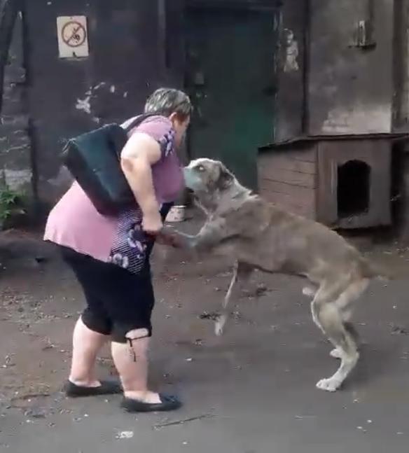 ▼這名女子來到收容所,試探著靠近狗狗,去摸牠的頭和身體。狗狗立刻就認出她,興奮地站起來撲到她的懷裡。牠似乎要把這麼久以來受的所有苦、所有委屈都宣洩出來:「你怎麼現在才來找我,我好想你!」女子確定這就是自己家遺失的愛犬!