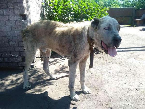 2021年06月02日烏克蘭的一間動物收容所裡出現了溫馨感人的一幕~幾個月前,一隻浪浪被送到這裡,牠體型很大,有一雙漂亮的藍眼睛,但身體瘦弱,還有一些營養不良,毛髮也非常雜亂,看起來非常淒慘。救援人員有點擔心,這樣的外型很不討喜,想找到新家恐怕不容易。