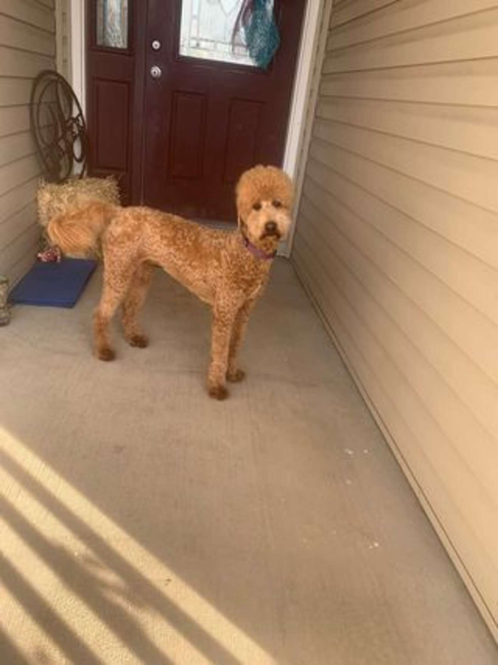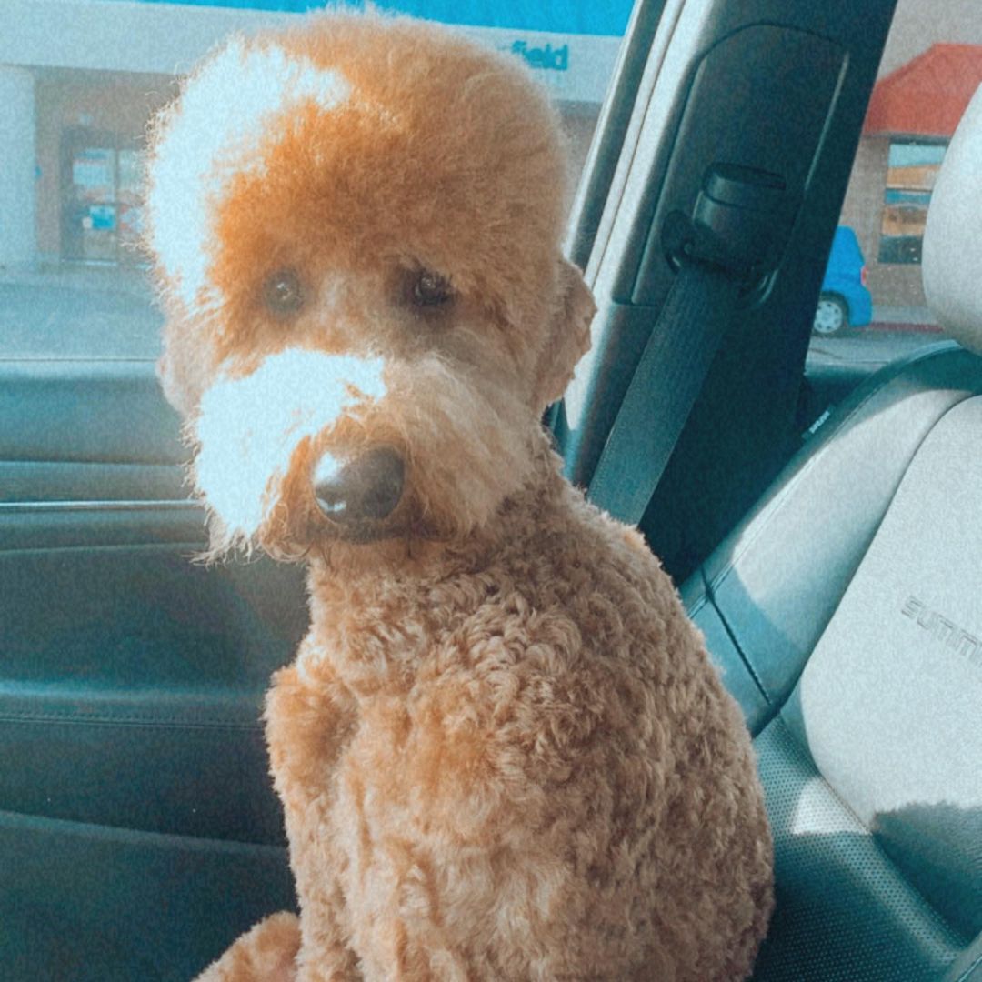 ▼Roxy的自然捲毛非常蓬鬆,需要定期打理,牠已經很習慣去寵物美容了。馬麻Eris Baker說,以前Roxy只會理身上的毛髮,頭部以上都是保持原樣。最近她發現Roxy耳朵上的毛髮特別容易糾結成團,就請美容師順便修一下牠耳朵附近的毛。