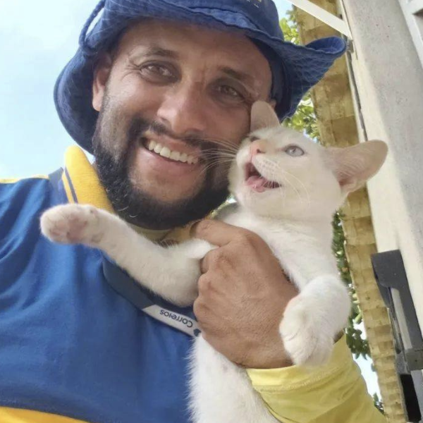 ▼Carteiro在社群網站上有一個專頁,裡面的照片並不是他的工作日常,而是他跟各種小動物的合照。照片中的貓咪、狗狗,都是他送貨時收件客戶家中的寵物。