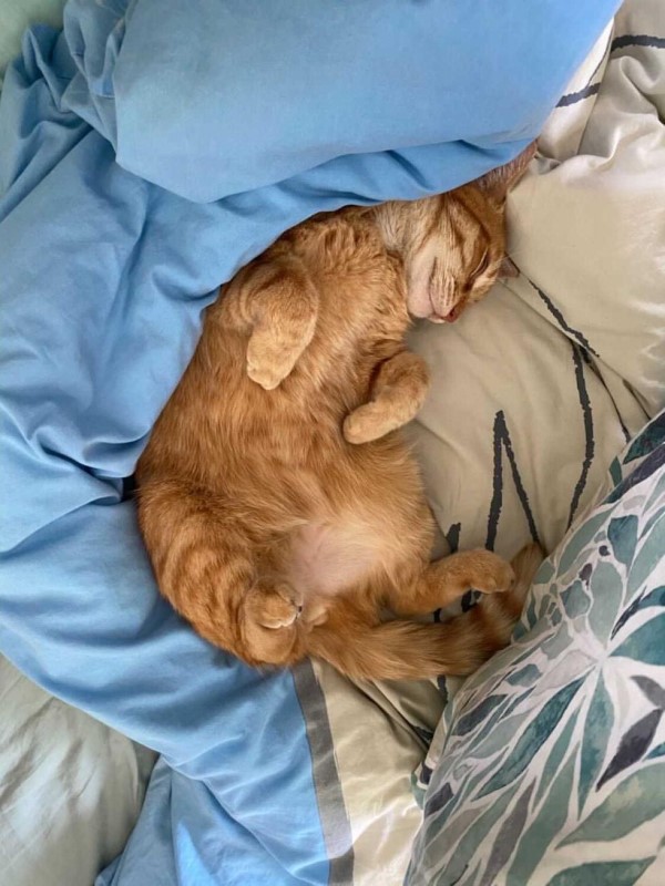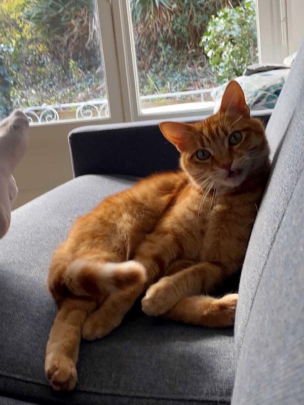 ▼Morgan和男友剛剛搬到新家,還沒有養寵物,這隻橘貓給了他們很大的驚喜。那天早上男友準備去市場買魚,沒想到橘貓竟出現了。牠大方地走進屋,巡視一週後就毫不客氣地躺在沙發上。