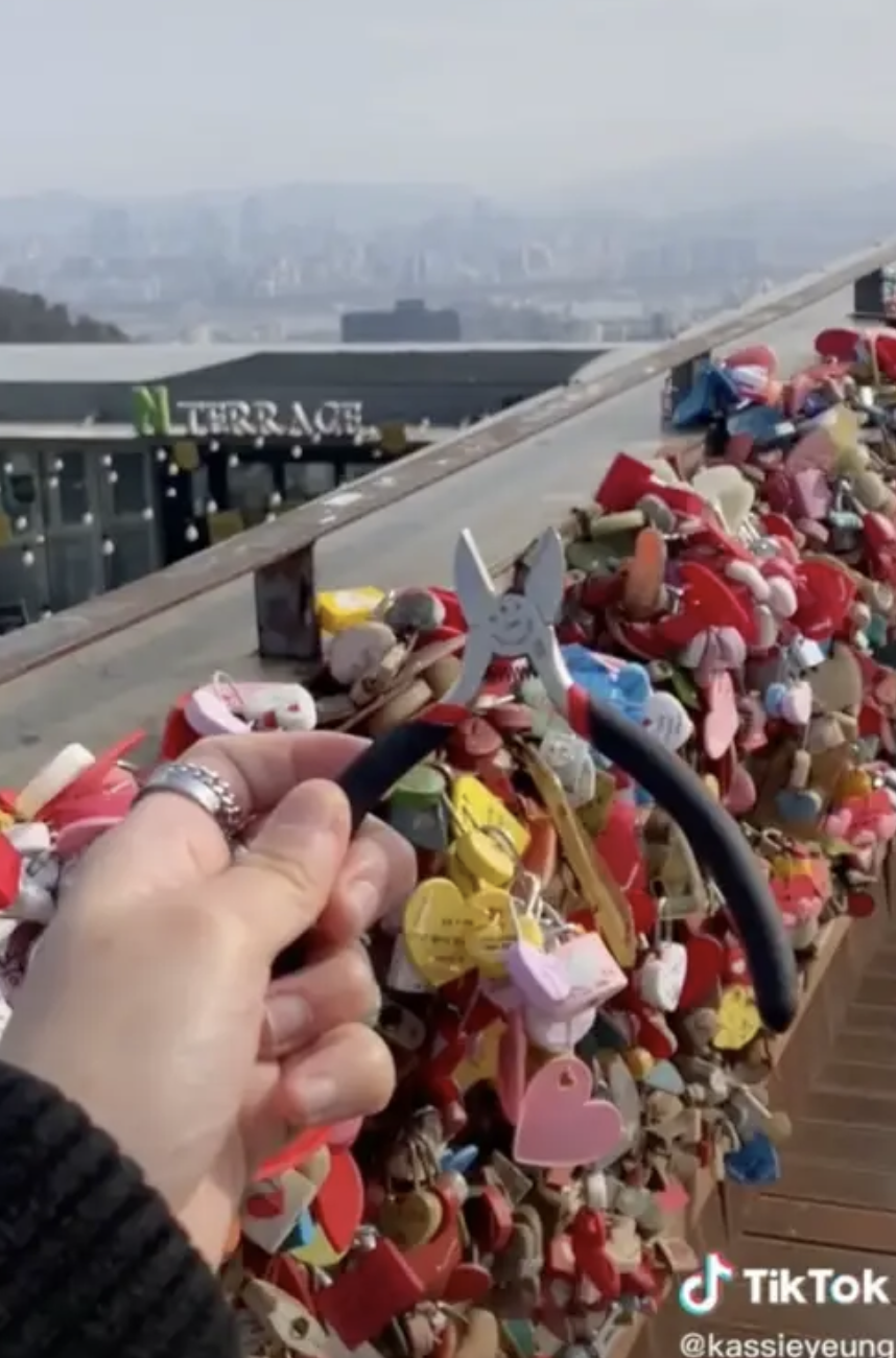2022年05月27日最近23歲TikToker「Kassie Yeung」拍攝的一段影片在網路上引發討論。她搭飛機從美國洛杉磯前往韓國首爾,跨越5953英里,只為取下幾年前跟前任在南山塔掛的愛情鎖。她將整個過程都拍下來,po到TikTok上後迅速引發熱議,短短幾天點閱量就超過450萬。