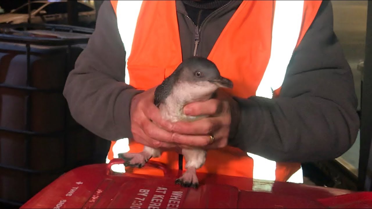 ▼當地保育部的工作人員趕到壽司店,將這2個執著的小傢伙抓拿歸案。他們表示會為小藍企鵝找一個適合築巢的地方,但回到先前可能築巢的地點築巢,是企鵝的天性,所以他們已經做好準備,很可能再次接到Long Lin的電話通報。