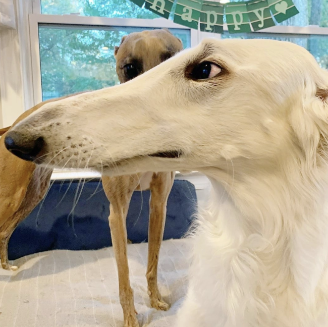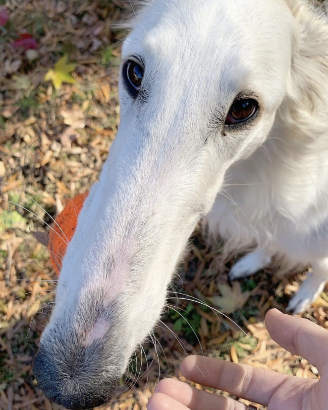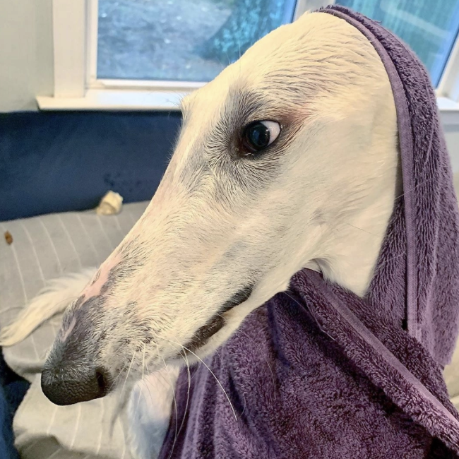 ▼Eris是一隻蘇俄牧羊犬,這種狗狗也被叫做波索獵犬,傳統上是用來追蹤狼群的。牠們速度很快,兼具智慧和勇敢,個性溫馴,很少吠叫,是非常棒的寵物。Eris就是這樣一隻優秀的狗狗。