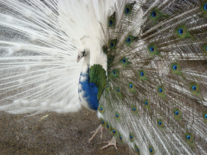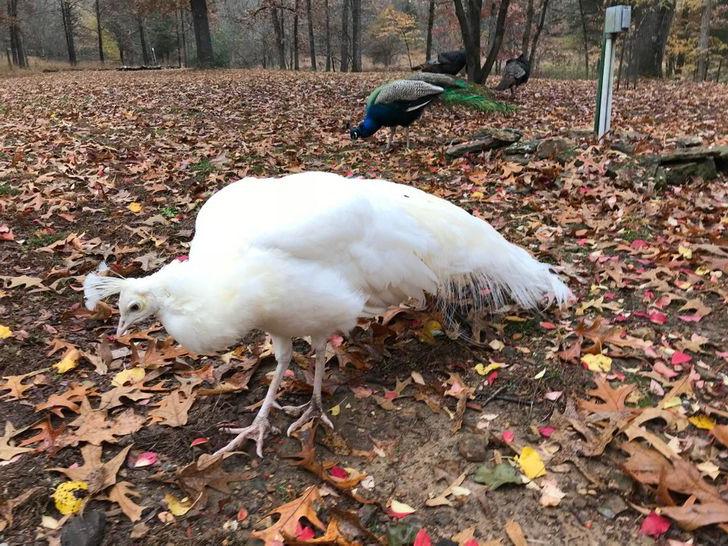 ▼純白色的孔雀。