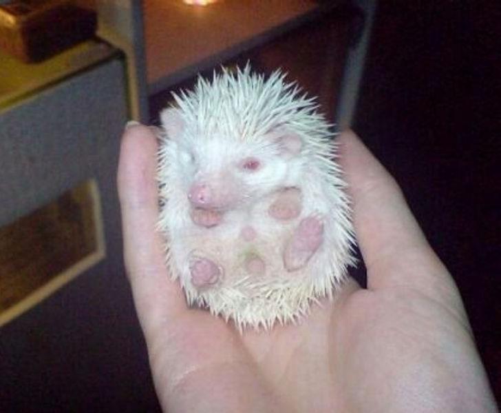 ▼在花園中看到一隻白色小刺蝟。